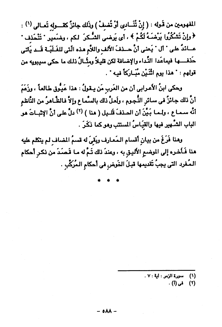 وهنا فرغ من بيان أقسام المعارف وبقى له قسم المضاف لم يتكلم عليه هنا فأخره إلى الموضع الأليق به، وعند ذلك تم له ما قصد من ذكر أحكام المفرد التي يجب تقديمها قبل الخوض في أحكام المركب.
