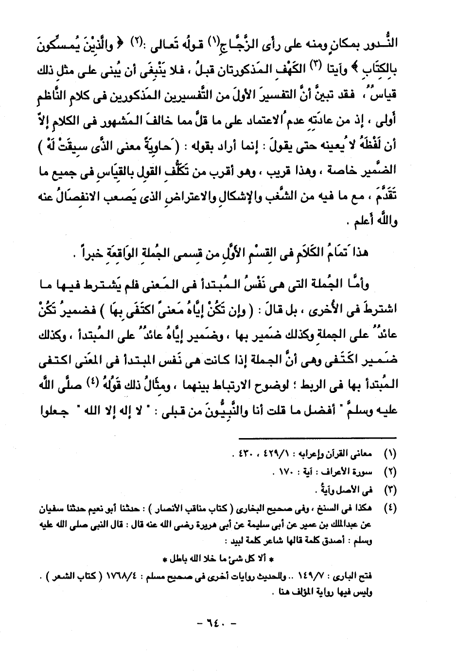 هذا تمام الكلام في القسم الأول من قسمي الجملة الواقعة خبرا.