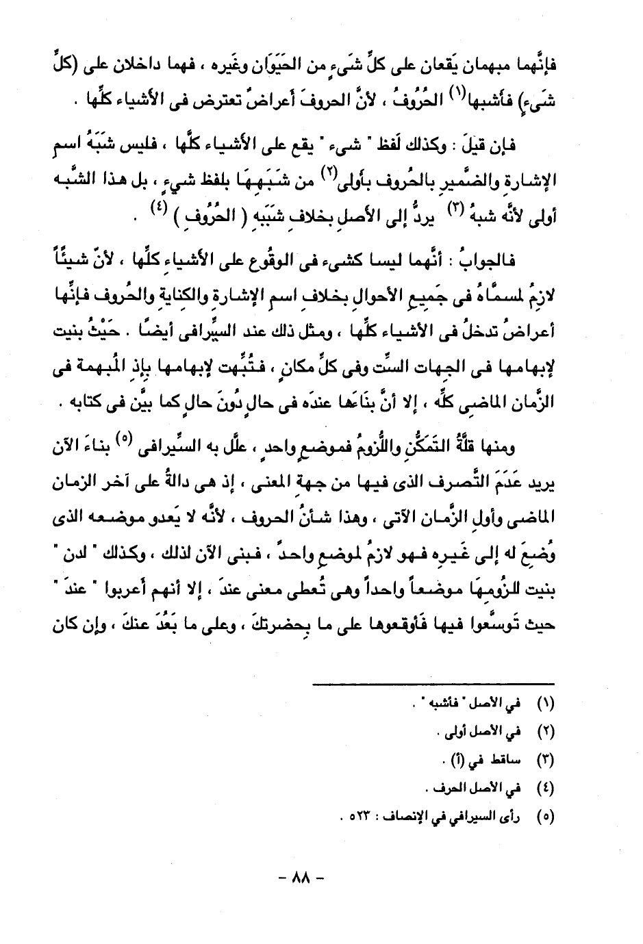 فإن قيل: كذلك لفظ "شيء" يقع على الأشياء كلها, فليس شَبَه اسم الإشارة والضمير بالحروف بأولى من شَبَهِها بلفظ شيء, بل هذا الشبه أولى لأنه شبه يردُّ إلى الأصل بخلاف شبَبَه (الحروف).