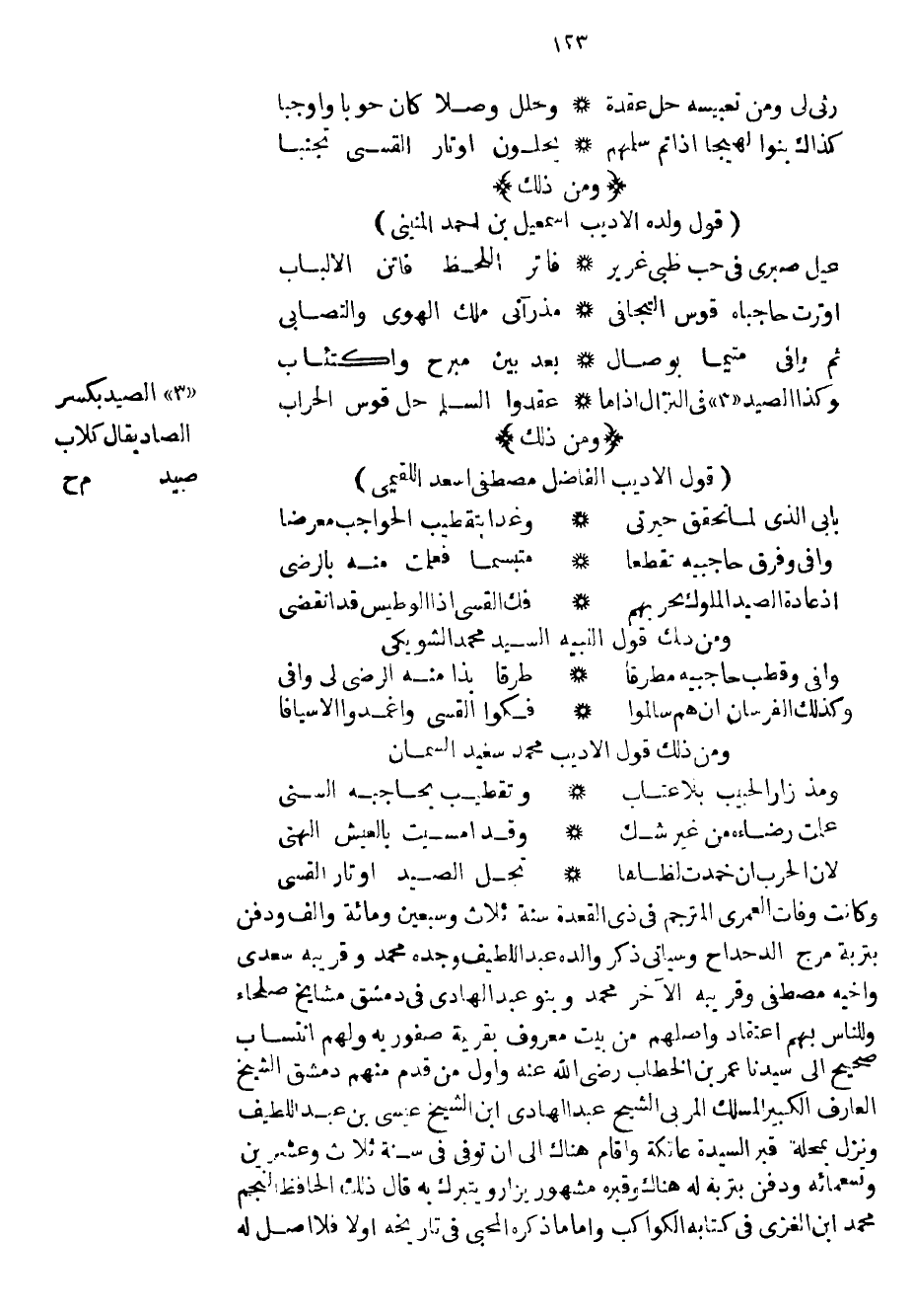 ومن ذلك قول الاديب الفاضل مصطفى اسعد اللقيمي