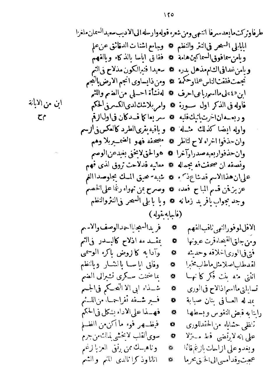 وجد بجواب يا فريد زمانه ... ويا بابلي السحر في النثر والنظم