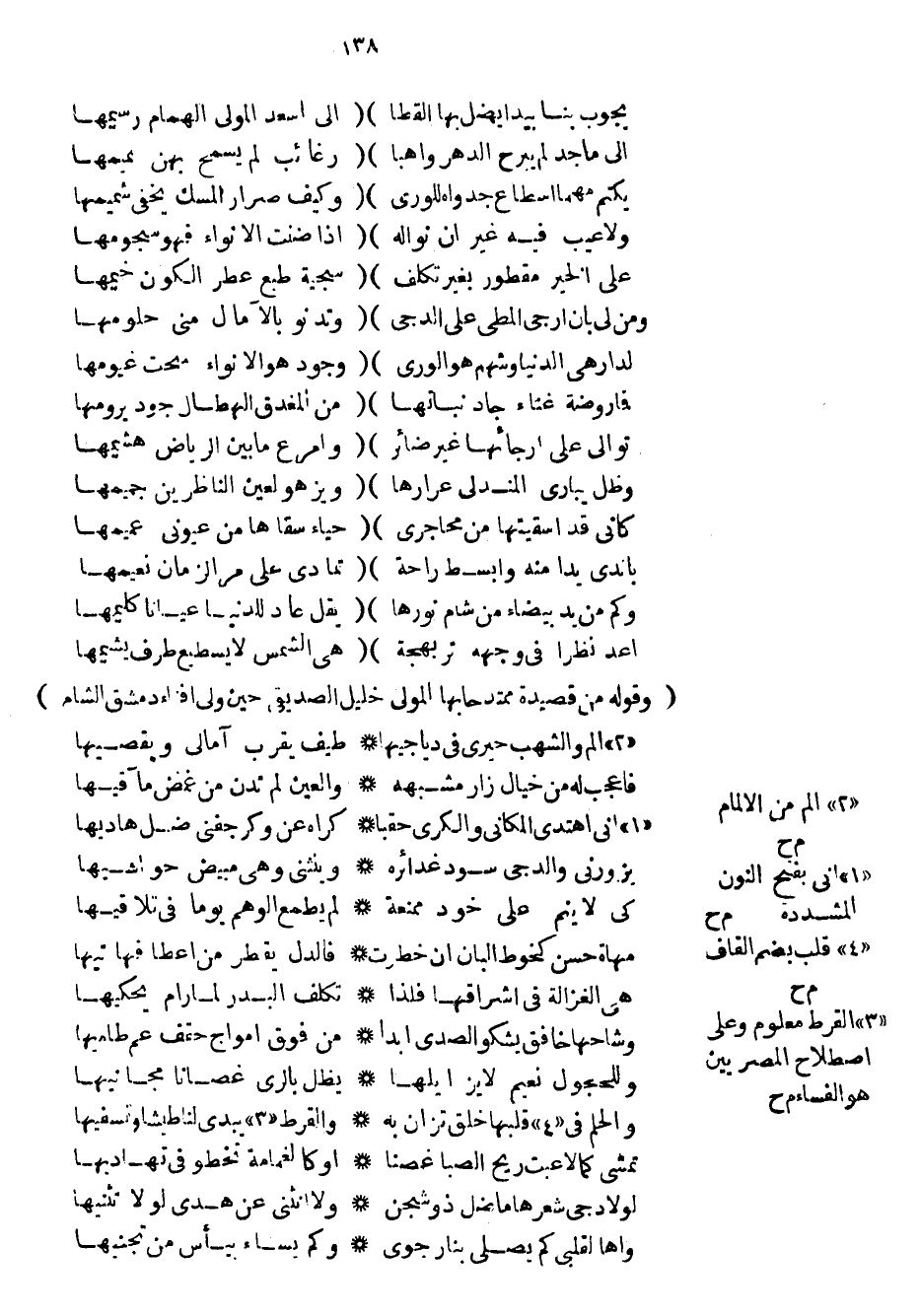 وقوله من قصيدة ممتدحاً بها المولى خليل الصديقي حين ولي أفناء دمشق الشام