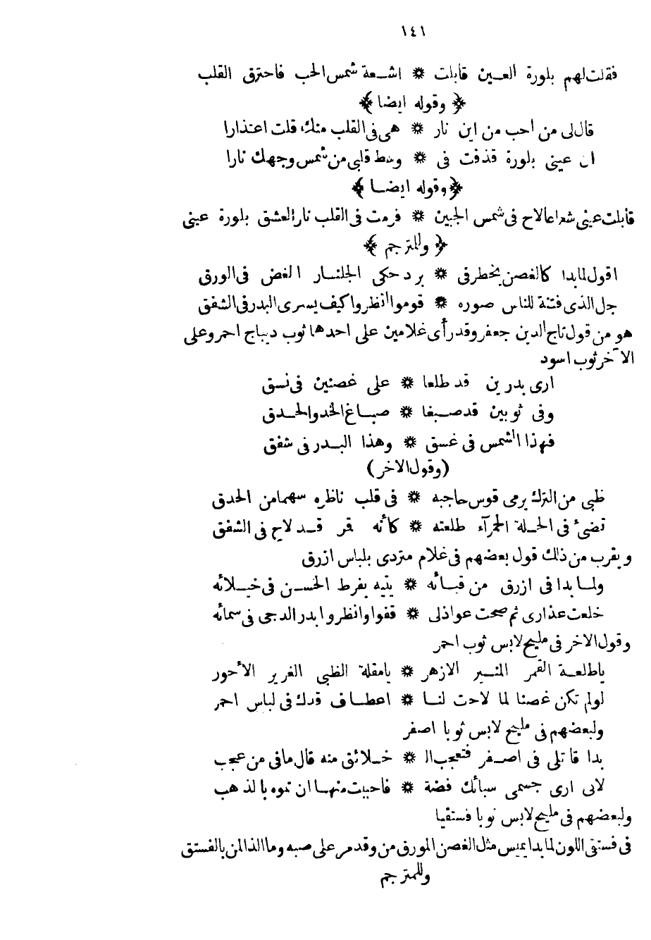 جل الذي فتنة للناس صوره ... قوموا انظروا كيف يسري البدر في الشفق