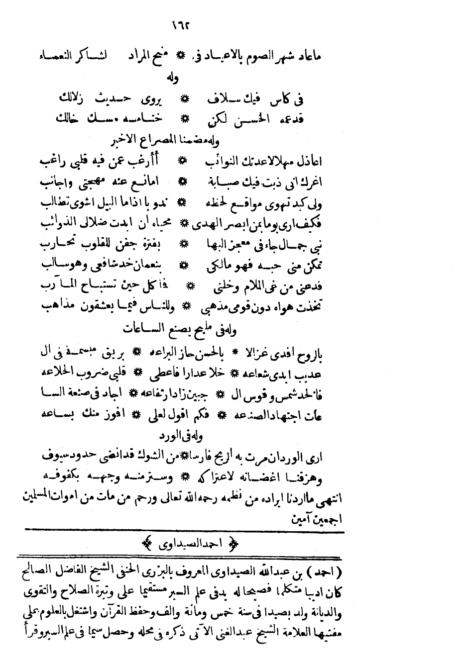 أنتهى ما أردنا ايراده من نظمه رحمه الله تعالى ورحم من مات من أموات المسلمين أجمعين آمين
