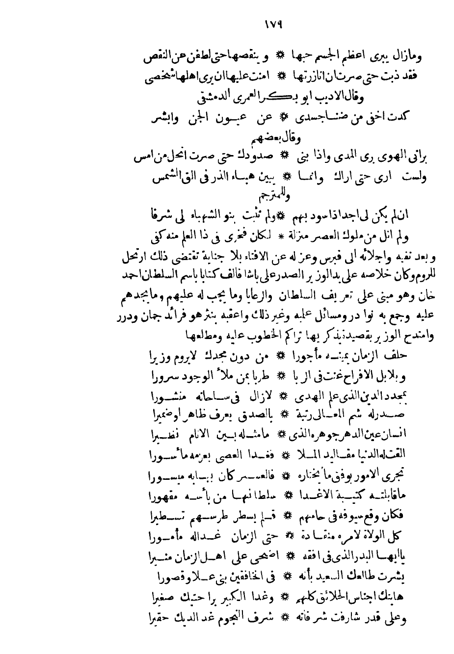يا أيها البدر الذي في أفقه ... أضحى على أهل الزمان منيرا