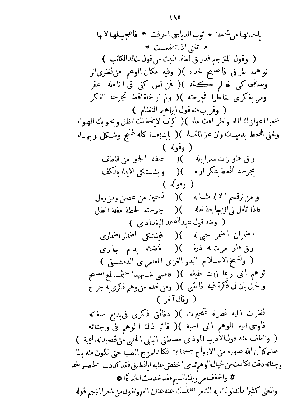 والمعنى كثيراً ما تدأولت به الشعر أفلنمسك عنه عنان القلم ونقول من شعر المترجم قوله
