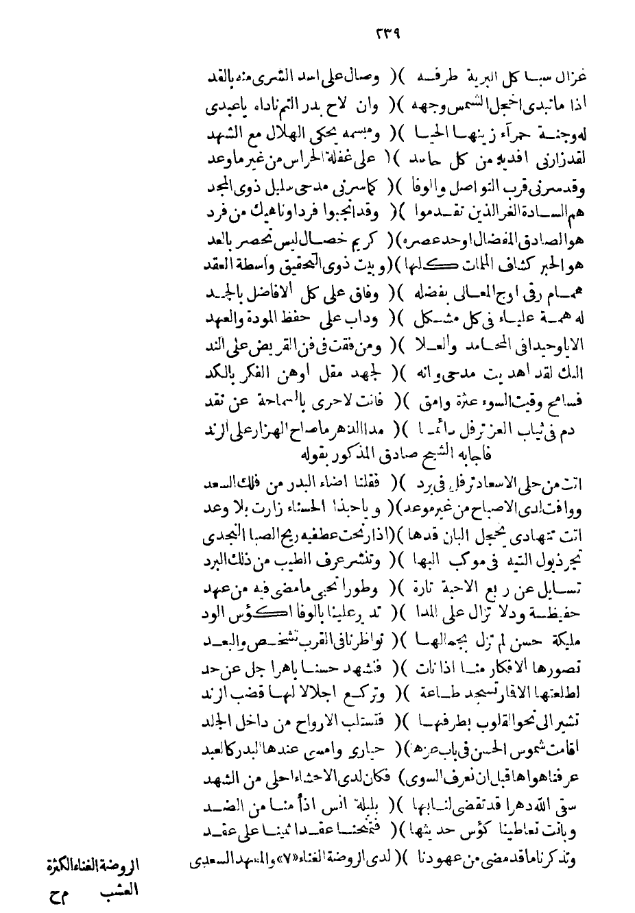 أتت من حلي الاسعاد ترفل في برد ... فقلنا أضاء البدر من فلك السعد