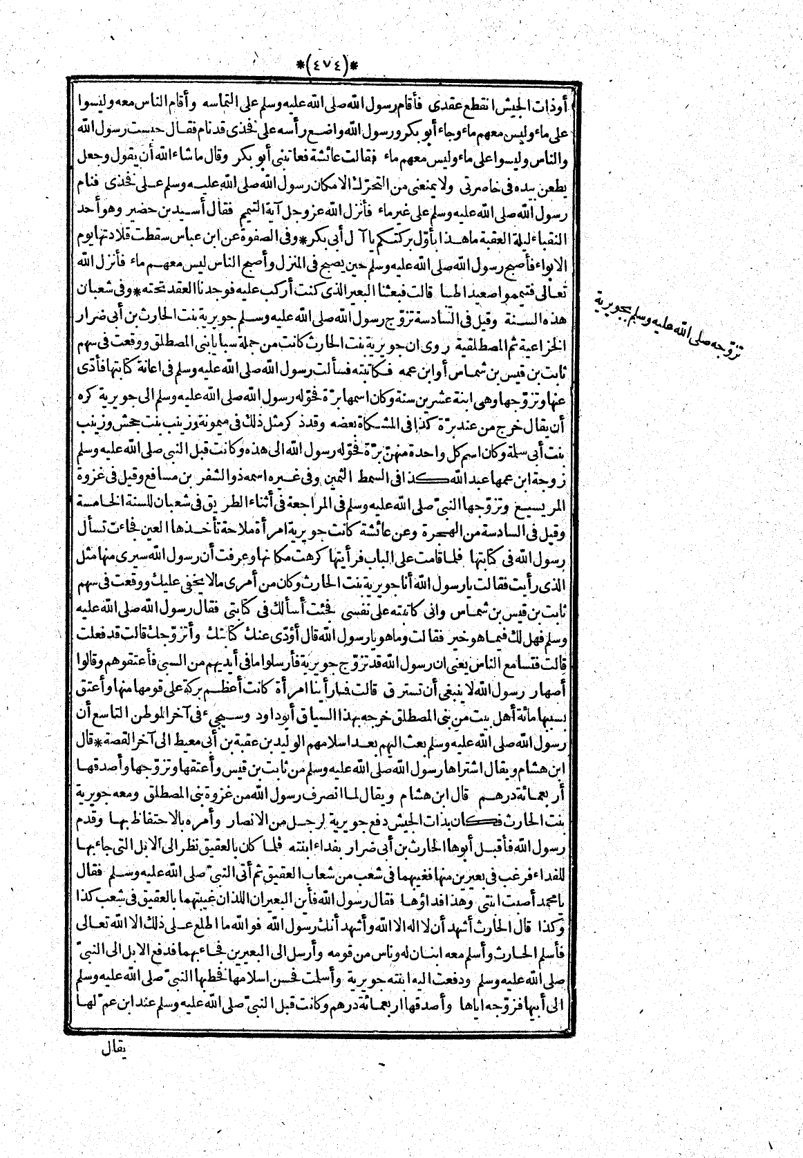 وفى شعبان هذه السنة وقيل فى السادسة تزوّج رسول الله صلّى الله عليه وسلم جويرية بنت الحارث بن أبى ضرار الخزاعية ثم المصطلقية روى ان جويرية بنت الحارث كانت من جملة سبايا بنى المصطلق ووقعت فى سهم ثابت بن قيس بن شماس أو ابن عمه فكاتبته فسألت رسول الله صلّى الله عليه وسلم فى اعانة كتابتها فأدّى عنها وتزوّجها وهى ابنة عشرين سنة وكان اسمها برّة فحوّله رسول الله صلّى الله عليه وسلم الى جويرية كره أن يقال خرج من عند برّة كذا فى المشكاة بعضه وقد ذكر مثل ذلك فى ميمونة وزينب بنت جحش وزينب بنت أبى سلمة وكان اسم كل واحدة منهنّ برّة فحوّله رسول الله الى هذه وكانت قبل النبى صلّى الله عليه وسلم زوجة ابن عمها عبد الله كذا فى السمط الثمين وفى غيره اسمه ذو الشفر بن مسافع وقيل فى غزوة المريسيع وتزوّجها النبىّ صلّى الله عليه وسلم فى المراجعة فى أثناء الطريق فى شعبان للسنة الخامسة وقيل فى السادسة من الهجرة وعن عائشة كانت جويرية امرأة ملاحة تأخذها العين فجاءت تسأل رسول الله فى كتابتها فلما قامت على الباب فرأيتها كرهت مكانها وعرفت أن رسول الله سيرى منها مثل الذى رأيت فقالت يا رسول الله أنا جويرية بنت الحارث وكان من أمرى ما لا يخفى عليك ووقعت فى سهم ثابت بن قيس بن شماس وانى كاتبته على نفسى فجئت أسألك فى كتابتى فقال رسول الله صلّى الله عليه وسلم فهل لك فيما هو خير فقالت وما هو يا رسول الله قال أؤدّى عنك كتابتك وأتزوّجك قالت قد فعلت قالت فتسامع الناس يعنى ان رسول الله قد تزوّج جويرية فأرسلوا ما فى أيديهم من السبى فأعتقوهم وقالوا أصهار رسول الله لا ينبغى أن تسترق قالت فما رأينا امرأة كانت أعظم بركة على قومها منها وأعتق بسببها مائة أهل بيت من بنى المصطلق خرجه بهذا السياق أبو داود وسيجىء فى آخر الموطن التاسع أن رسول الله صلّى الله عليه وسلم بعث اليهم بعد اسلامهم الوليد بن عقبة بن أبى معيط الى آخر القصة* قال ابن هشام ويقال اشتراها رسول الله صلّى الله عليه وسلم من ثابت بن قيس وأعتقها وتزوّجها وأصدقها أربعمائة درهم قال ابن هشام ويقال لما انصرف رسول الله من غزوة بنى المصطلق ومعه جويرية بنت الحارث فكان بذات الجيش دفع جويرية لرجل من الانصار وأمره بالاحتفاظ بها وقدم رسول الله فأقبل أبوها الحارث بن أبى ضرار بفداء ابنته فلما كان بالعقيق نظر الى الابل التى جاء بها للفداء فرغب فى بعيرين منها فغيبهما فى شعب من شعاب العقيق ثم أتى النبىّ صلّى الله عليه وسلم فقال يا محمد أصبت ابنتى وهذا فداؤها فقال رسول الله فأين البعيران اللذان غيبتهما بالعقيق فى شعب كذا وكذا قال الحارث أشهد أن لا اله الا الله وأشهد أنك رسول الله فو الله ما اطلع على ذلك الا الله تعالى فأسلم الحارث وأسلم معه ابنان له وناس من قومه وأرسل الى البعيرين فجاء بهما فدفع الابل الى النبىّ صلى الله عليه وسلم ودفعت اليه ابنته جويرية وأسلمت فحسن اسلامها فخطبها النبىّ صلّى الله عليه وسلم الى أبيها فزوّجه اياها وأصدقها اربعمائة درهم وكانت قبل النبىّ صلّى الله عليه وسلم عند ابن عمّ لها