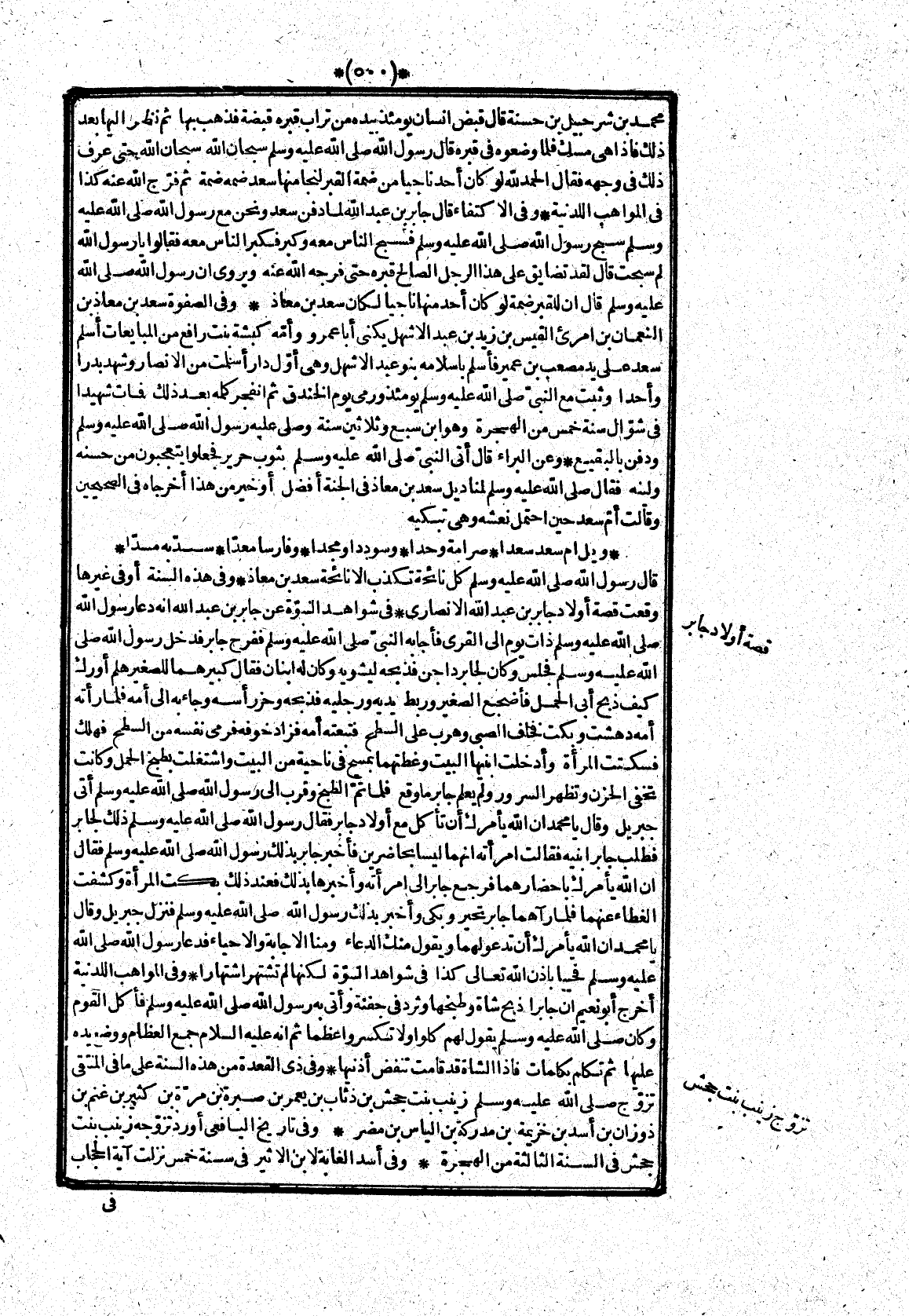 وفى ذى القعدة من هذه السنة على ما فى المنتقى تزوّج صلّى الله عليه وسلم زينب بنت جحش بن ذئاب بن يعمر بن صبرة بن مرّة بن كثير بن غنم بن ذوزان بن أسد بن خزيمة بن مدركة بن الياس بن مضر* وفى تاريخ اليافعى أورد تزوّجه زينب بنت جحش فى السنة الثالثة من الهجرة* وفى أسد الغابة لابن الاثير فى سنة خمس نزلت آية الحجاب
