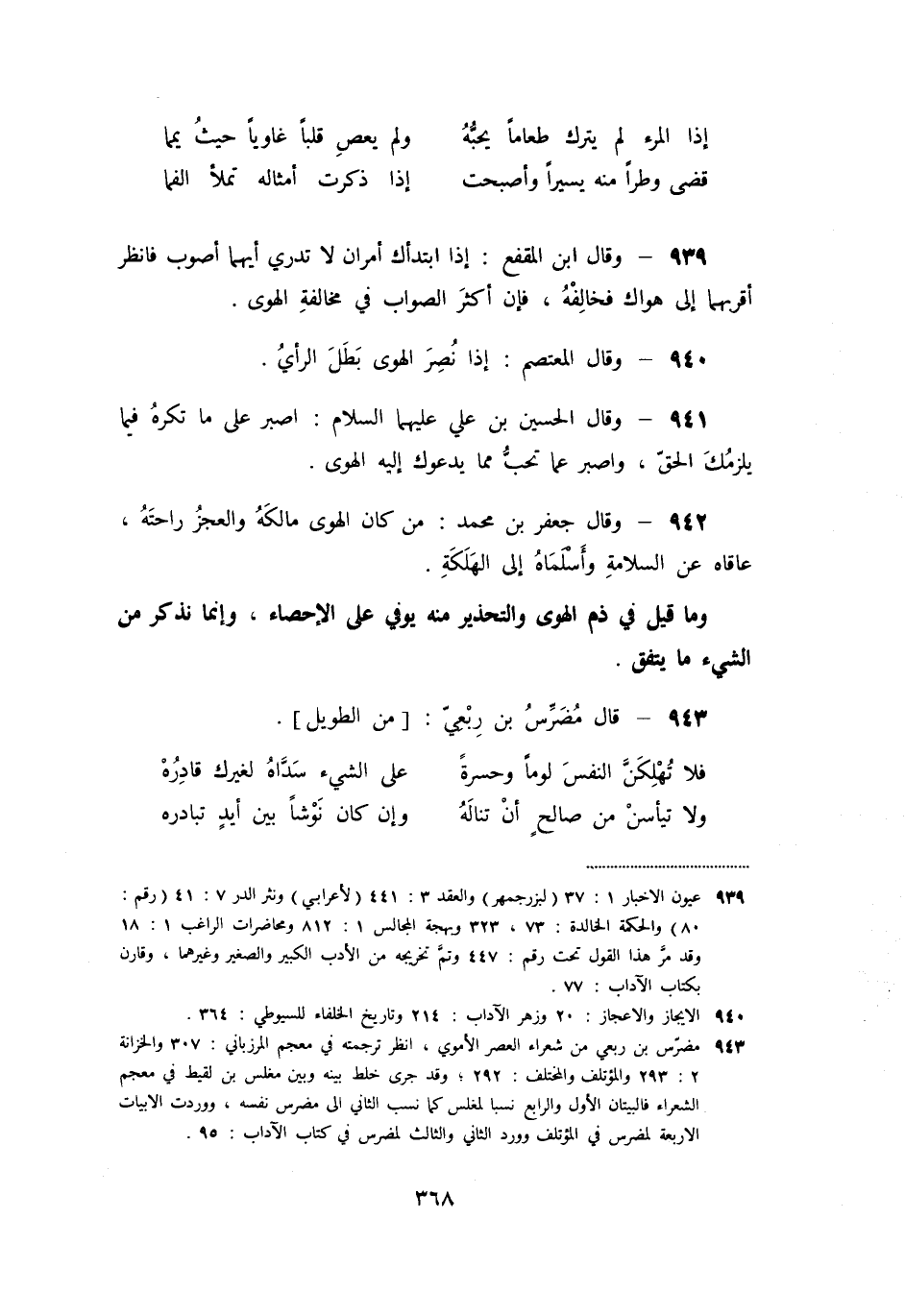 [939] عيون الاخبار 1: 37 (لبزرجمهر) والعقد 3: 441 (لأعرابي) ونثر الدر 7: 41 (رقم: