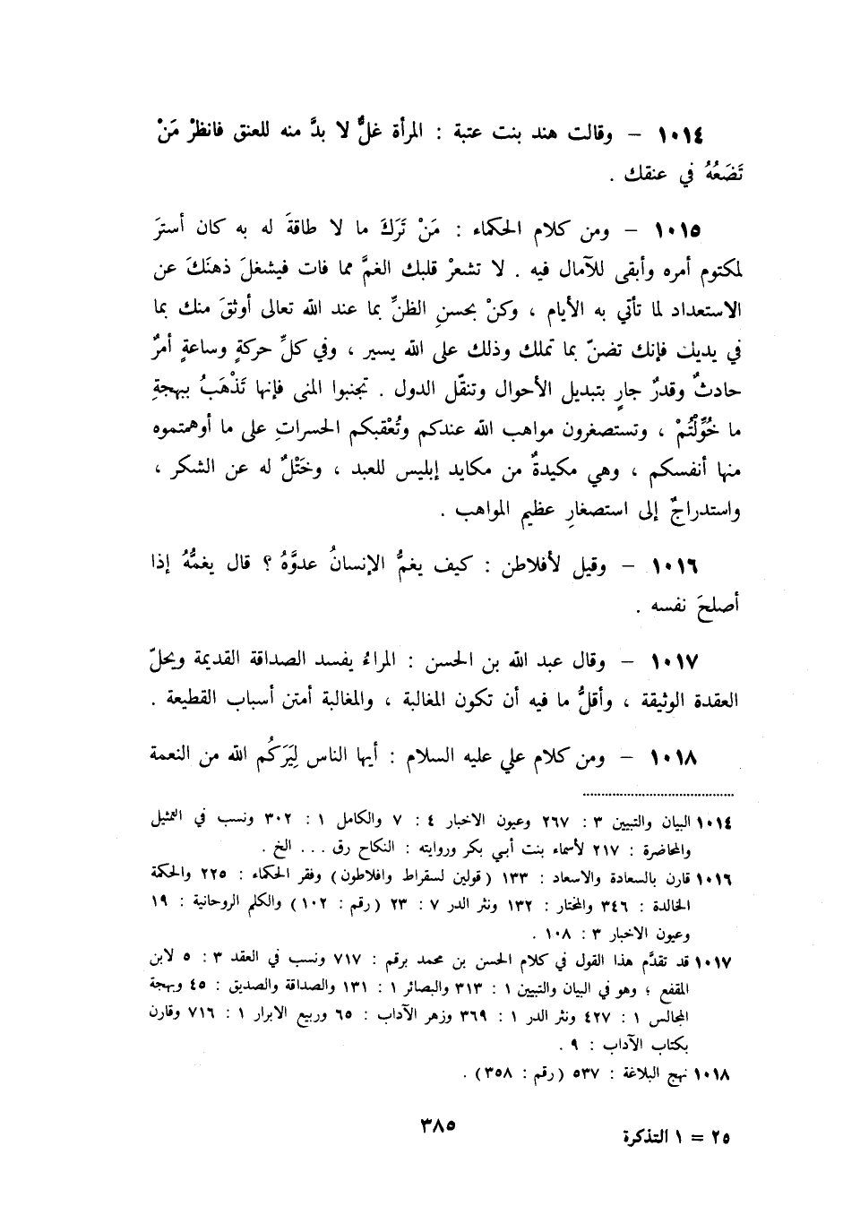 [1016] قارن بالسعادة والاسعاد: 133 (قولين لسقراط وافلاطون) وفقر الحكماء: 225 والحكمة الخالدة: 346 والمختار: 132 ونثر الدر 7: 23 (رقم: 102) والكلم الروحانية: 19 وعيون الاخبار 3: 108.