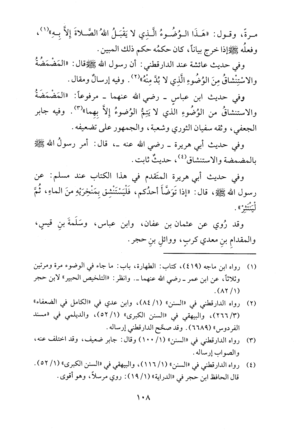 (٤) رواه الدارقطني فىِ "السنن" (١/ ١١٦)، والبيهقي في "السنن الكبرى" (١/ ٥٢). قال الحافظ ابن حجر في "الدراية" (١/ ١٩): روي مرسلاً، وهو أقوى.