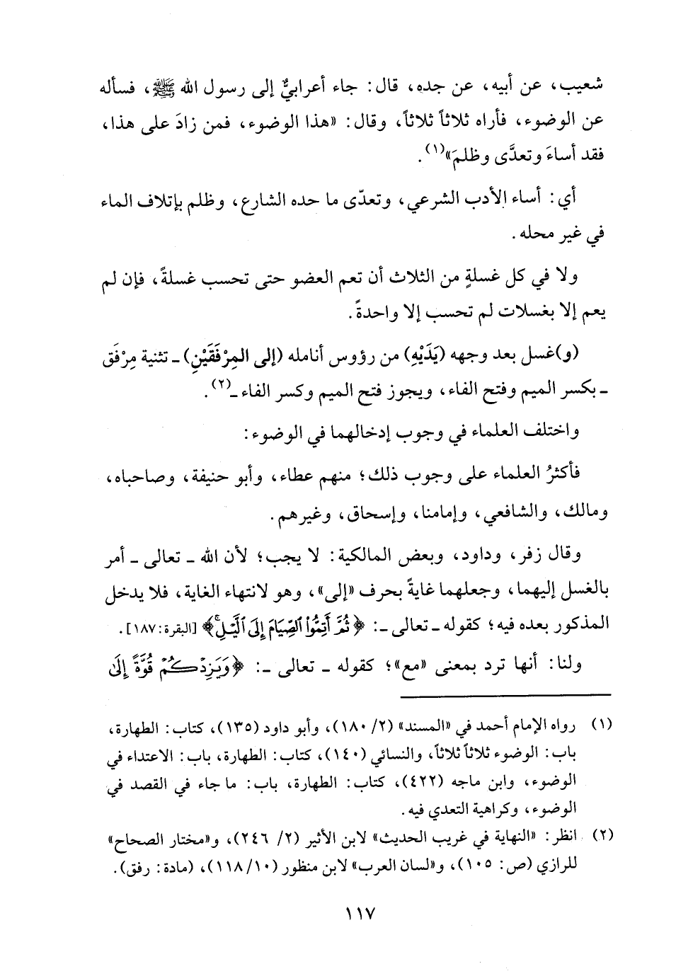 (١) رواه الإمام أحمد في "المسند" (٢/ ١٨٠)، وأبو داود (١٣٥)، كتاب: الطهارة، باب: الوضوء ثلاثاً ثلاثاً، والنسائي (١٤٠)، كتاب: الطهارة، باب: الاعتداء في الوضوء، وابن ماجه (٤٢٢)، كتاب: الطهارة، باب: ما جاء في القصد في الوضوء، وكراهية التعدي فيه.