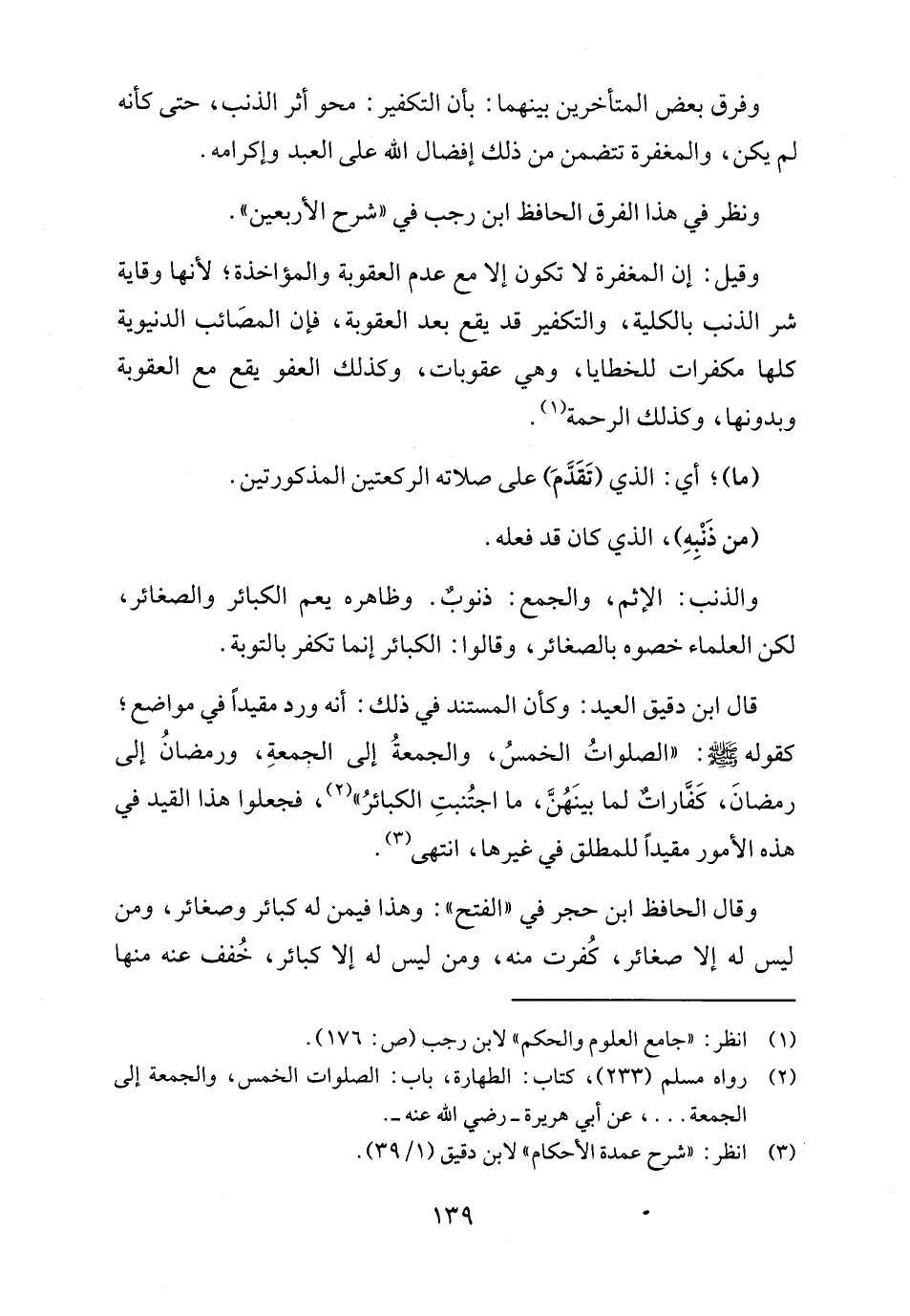 (٢) رواه مسلم (٢٣٣)، كتاب: الطهارة، باب: الصلوات الخمس، والجمعة إلى الجمعة ... ، عن أبي هريرة - رضي الله عنه -.