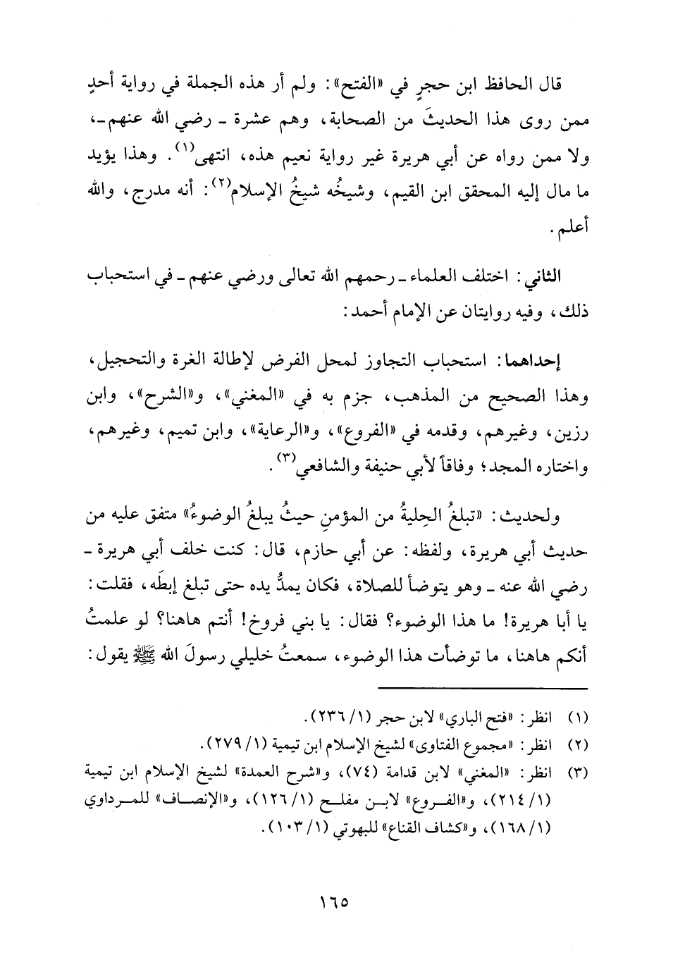 (٣) انظر: "المغني" لابن قدامة (٧٤)، و "شرح العمدة" لشيخ الإسلام ابن تيمية (١/ ٢١٤)، و"الفروع" لابن مفلح (١/ ١٢٦)، و"الإنصاف" للمرداوي (١/ ١٦٨)، و"كشاف القناع" للبهوتي (١/ ١٠٣).