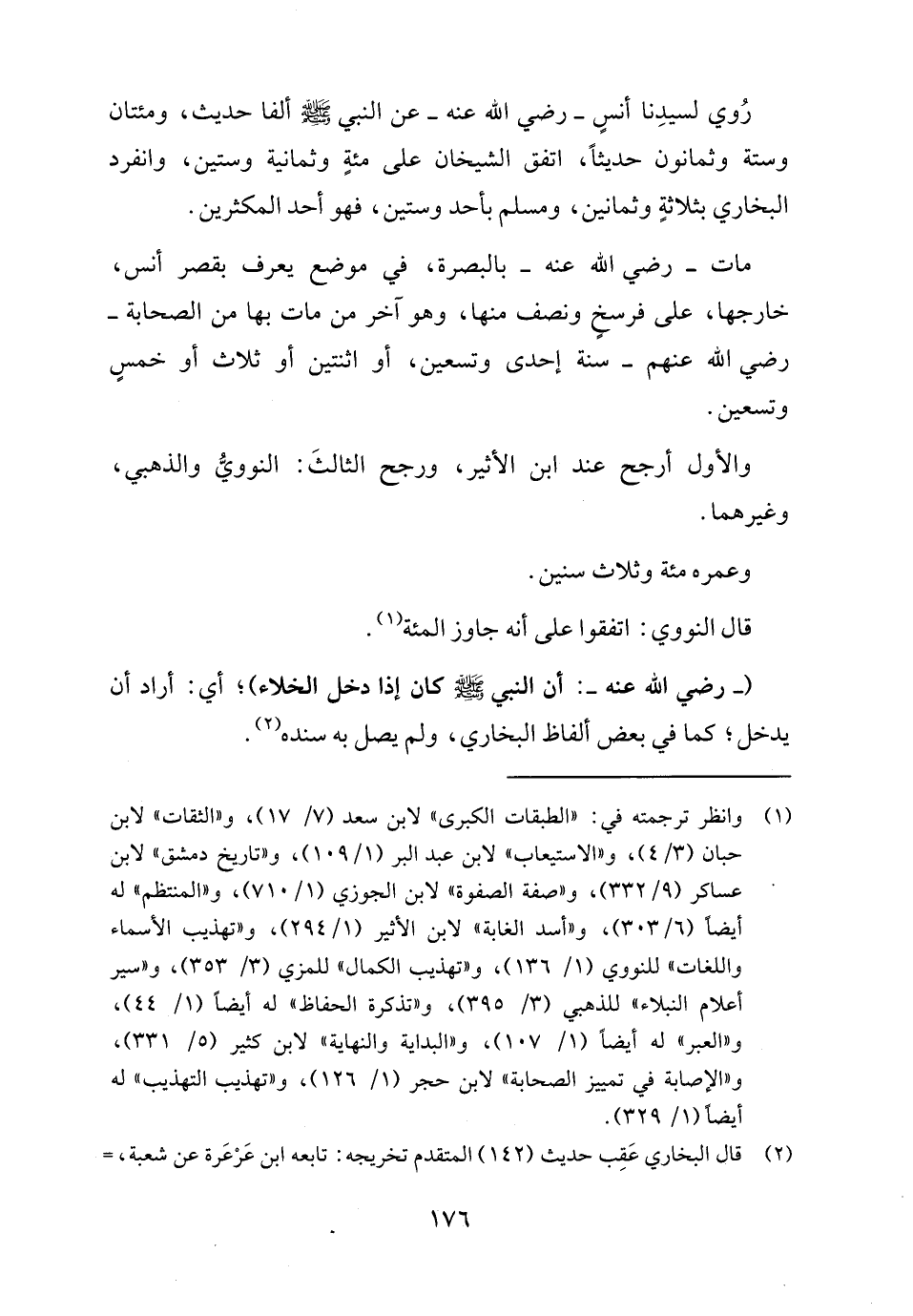 رُوي لسيدِنا أنسٍ - رضي الله عنه - عن النبي - صلى الله عليه وسلم - ألفا حديث، ومئتان وستة وثمانون حديثاً، اتفق الشيخان على مئةٍ وثمانية وستين، وانفرد البخاري بثلاثةٍ وثمانين، ومسلم بأحد وستين، فهو أحد المكثرين.