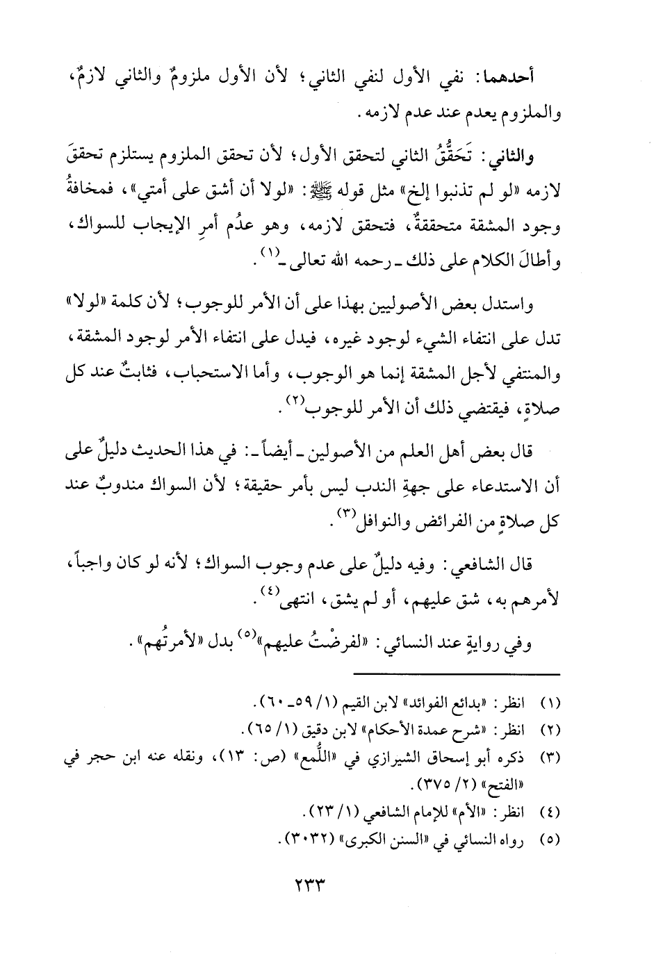 واستدل بعض الأصوليين بهذا على أن الأمر للوجوب؛ لأن كلمة "لولا" تدل على انتفاء الشيء لوجود غيره، فيدل على انتفاء الأمر لوجود المشقة، والمنتفي لأجل المشقة إنما هو الوجوب، وأما الاستحباب، فثابتٌ عند كل صلاةٍ، فيقتضي ذلك أن الأمر للوجوب (٢).