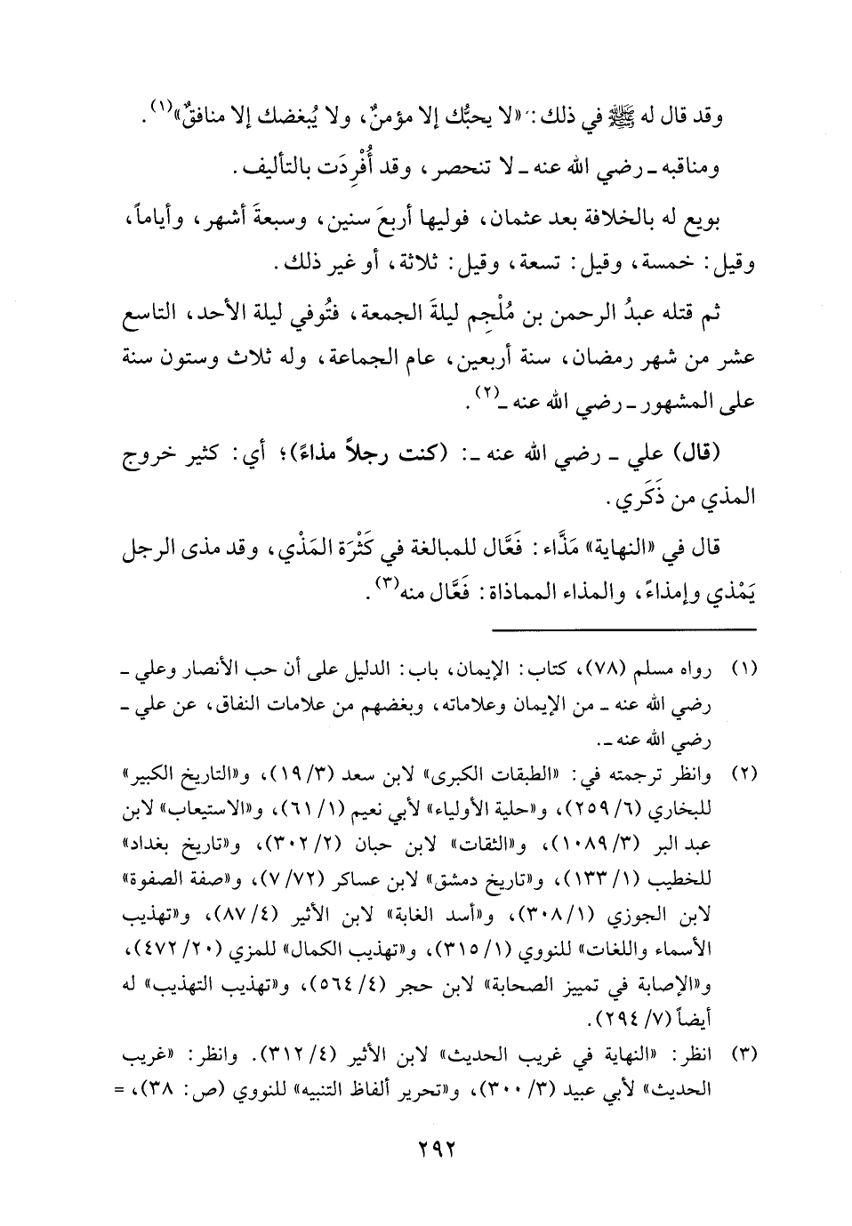 (١) رواه مسلم (٧٨)، كتاب: الإيمان، باب: الدليل على أن حب الأنصار وعلي - رضي الله عنه - من الإيمان وعلاماته، وبغضهم من علامات النفاق، عن علي - رضي الله عنه -.