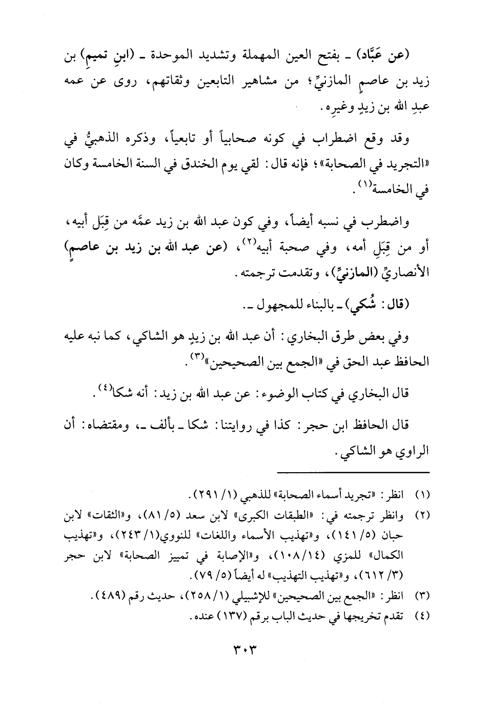 واضطرب في نسبه أيضاً، وفي كون عبد الله بن زيد عمَّه من قِبَل أبيه، أو من قِبَلِ أمه، وفي صحبة أبيه (٢)، (عن عبد الله بن زيد بن عاصمٍ) الأنصاريِّ (المازنيِّ)، وتقدمت ترجمته.
