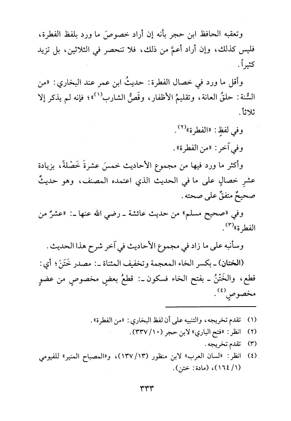وتعقبه الحافظ ابن حجر بأنه إن أراد خصوصَ ما ورد بلفظ الفطرة، فليس كذلك، وإن أراد أعمَّ من ذلك، فلا تنحصر في الثلاثين، بل تزيد كثيراً.