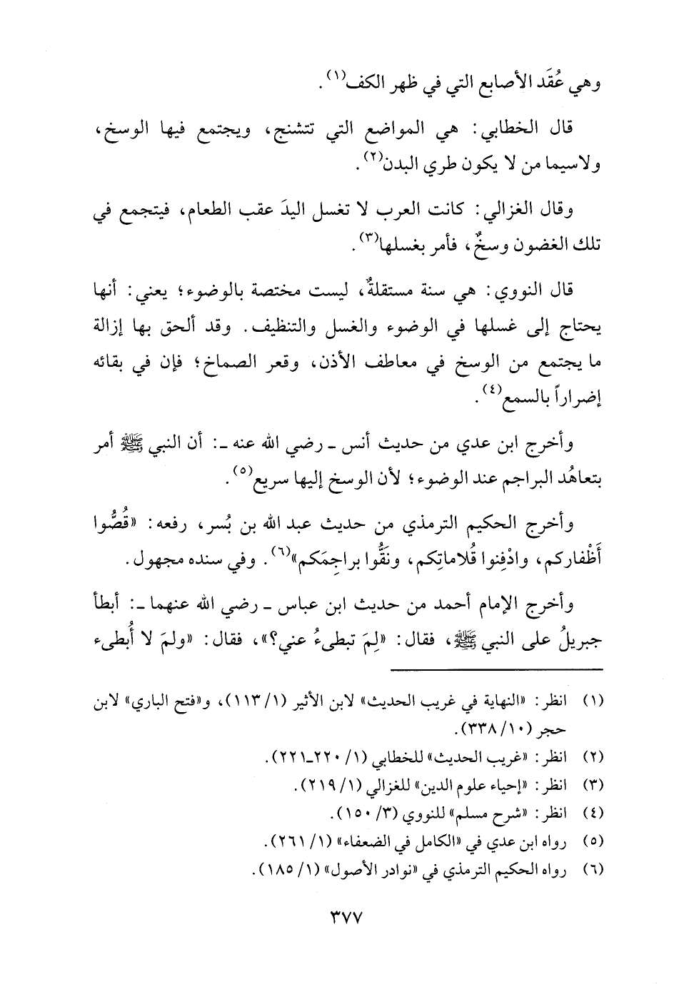 وأخرج ابن عدي من حديث أنس - رضي الله عنه -: أن النبي - صلى الله عليه وسلم - أمر بتعاهُد البراجم عند الوضوء؛ لأن الوسخ إليها سريع (٥).