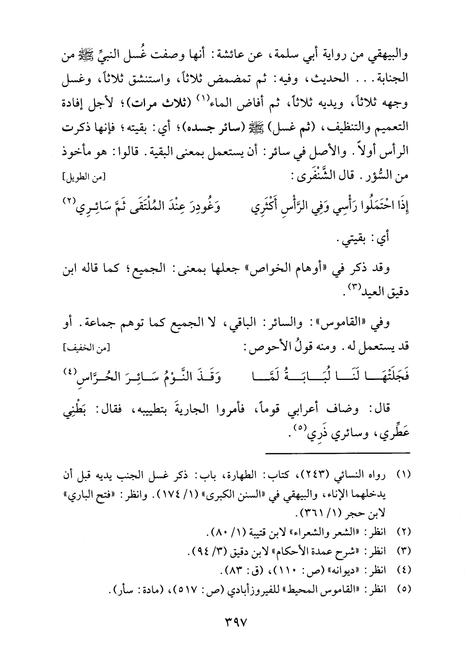 وفي "القاموس": والسائر: الباقي، لا الجميع كما توهم جماعة. أو قد يستعمل له. ومنه قولُ الأحوص: [من الخفيف]