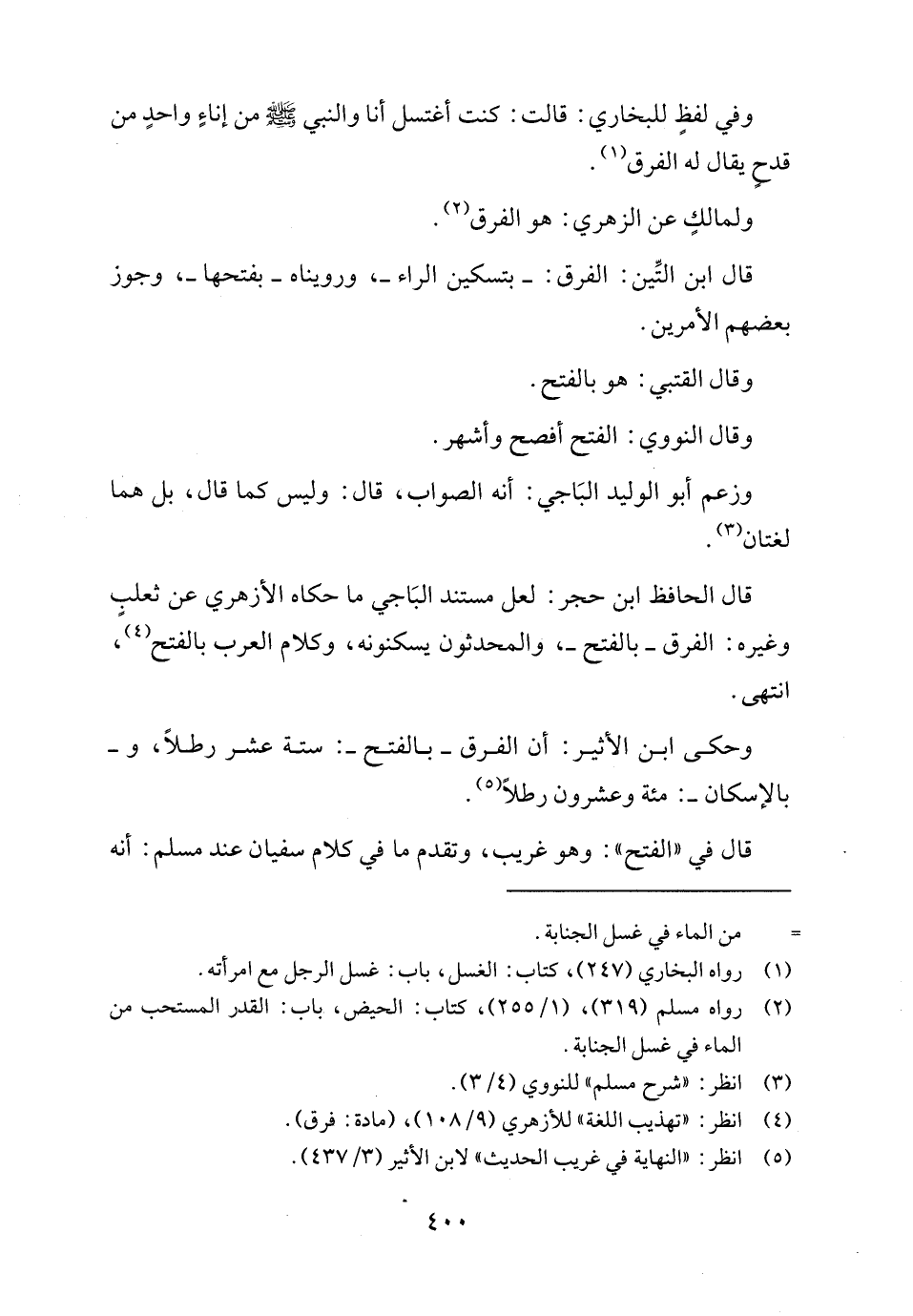 قال الحافظ ابن حجر: لعل مستند البَاجي ما حكاه الأزهري عن ثعلبٍ وغيره: الفرق -بالفتح-، والمحدثون يسكنونه، وكلام العرب بالفتح (٤)، انتهى.