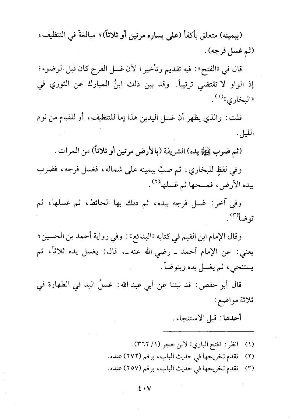 قال أبو حفص: قد نبئنا عن أبي عبد الله: غسلُ اليد في الطهارة في ثلاثة مواضع: