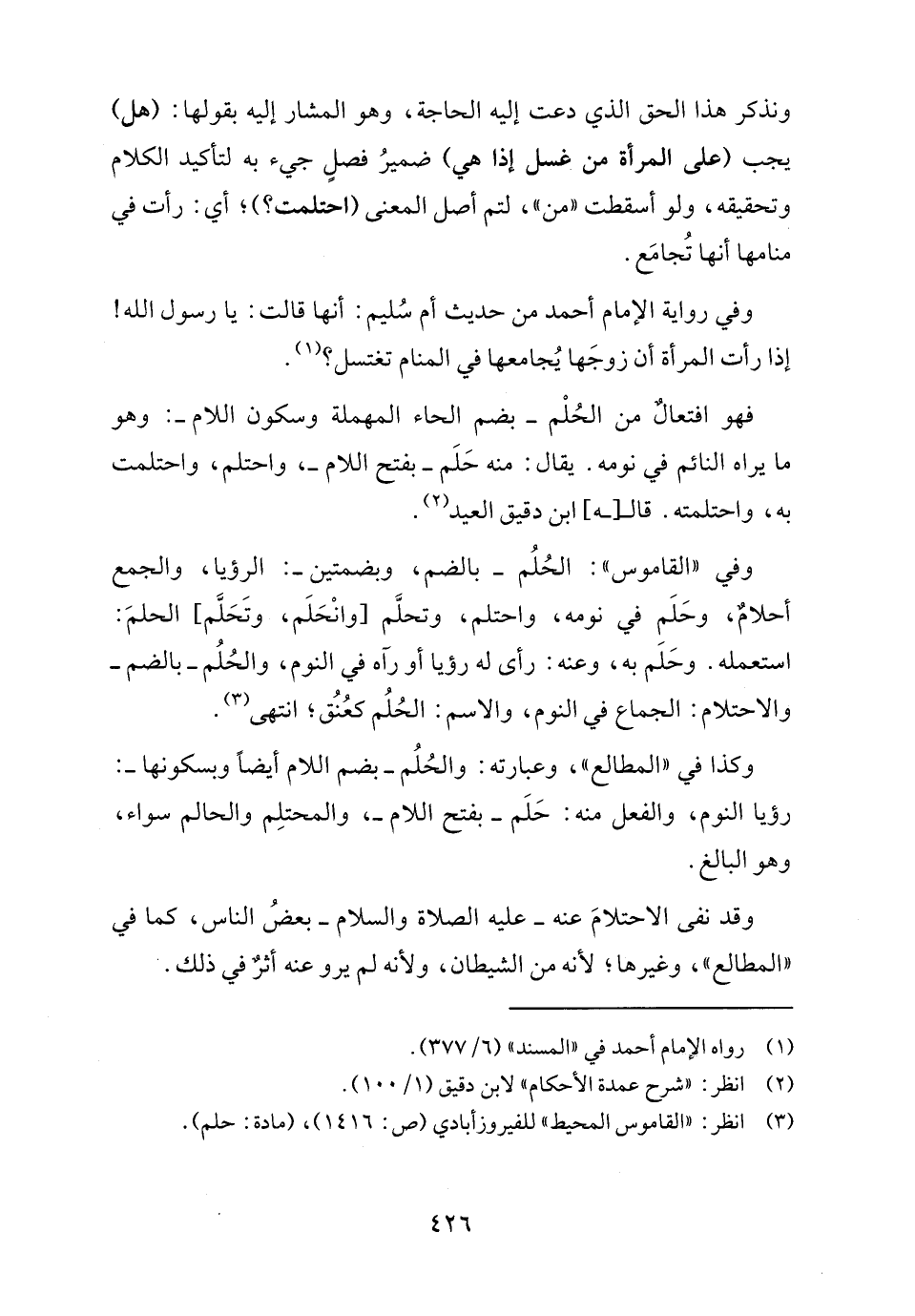 فهو افتعالٌ من الحُلْم -بضم الحاء المهملة وسكون اللام-: وهو ما يراه النائم في نومه. يقال: منه حَلَم -بفتح اللام-، واحتلم، واحتلمت به، واحتلمته. قالـ[ـه] ابن دقيق العيد (٢).