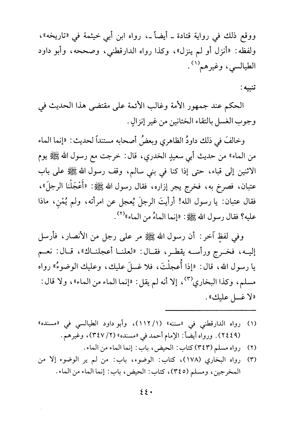 (٢) رواه مسلم (٣٤٣) كتاب: الحيض، باب: إنما الماء من الماء.