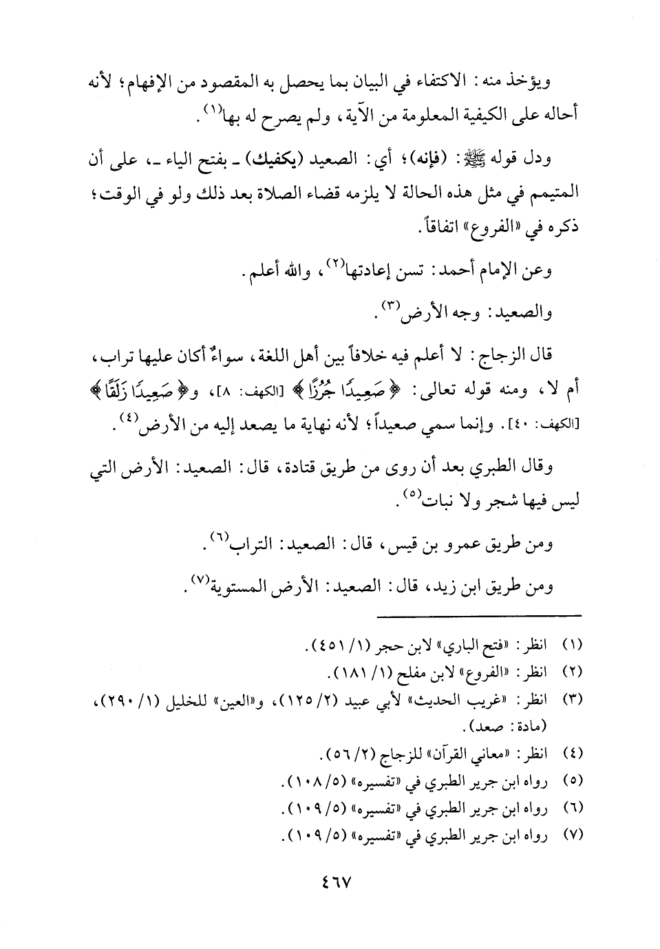 قال الزجاج: لا أعلم فيه خلافًا بين أهل اللغة، سواءٌ أكان عليها تراب، أم لا، ومنه قوله تعالى: {صَعِيدًا جُرُزًا} [الكهف: ٨] و {صَعِيدًا زَلَقًا} [الكهف: ٤٠]. وإنما سمي صعيدًا؛ لأنه نهاية ما يصعد إليه من الأرض (٤).