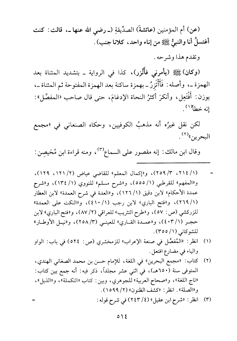 = (١/ ٢١٤، ٣/ ٢٥٩)، و"إكمال المعلم" للقاضي عياض (٢/ ١٢١، ١٢٩)، و"المفهم" للقرطبي (١/ ٥٥٥)، و"شرح مسلم" للنووي (١/ ١٣٤)، و"شرح عمدة الأحكام" لابن دقيق (١/ ١٢٦)، و"العدة في شرح العمدة" لابن العطار (١/ ٢٦٩)، و"فتح الباري" لابن رجب (١/ ٤١٠)، و"النكت على العمدة" للزركشي (ص: ٥٧)، و" طرح التثريب" للعراقي (٢/ ٨٧)، و" فتح الباري" لابن حجر (١/ ٤٠٣)، و"عمدة القاري" للعيني (٣/ ٢٥٨)، و"نيل الأوطار" للشوكاني (١/ ٣٥٥).