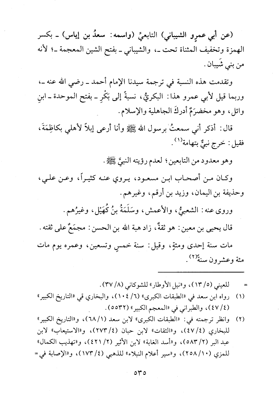 وتقدمت هذه النسبة في ترجمة سيدنا الإمام أحمد - رضي الله عنه -، وربما قيل لأبي عمرو هذا: البكريُّ، نسبةً إلى بَكْرِ -بفتح الموحدة- ابنِ وائل، وهو مخضرَمٌ أدركَ الجاهلية والإسلام.