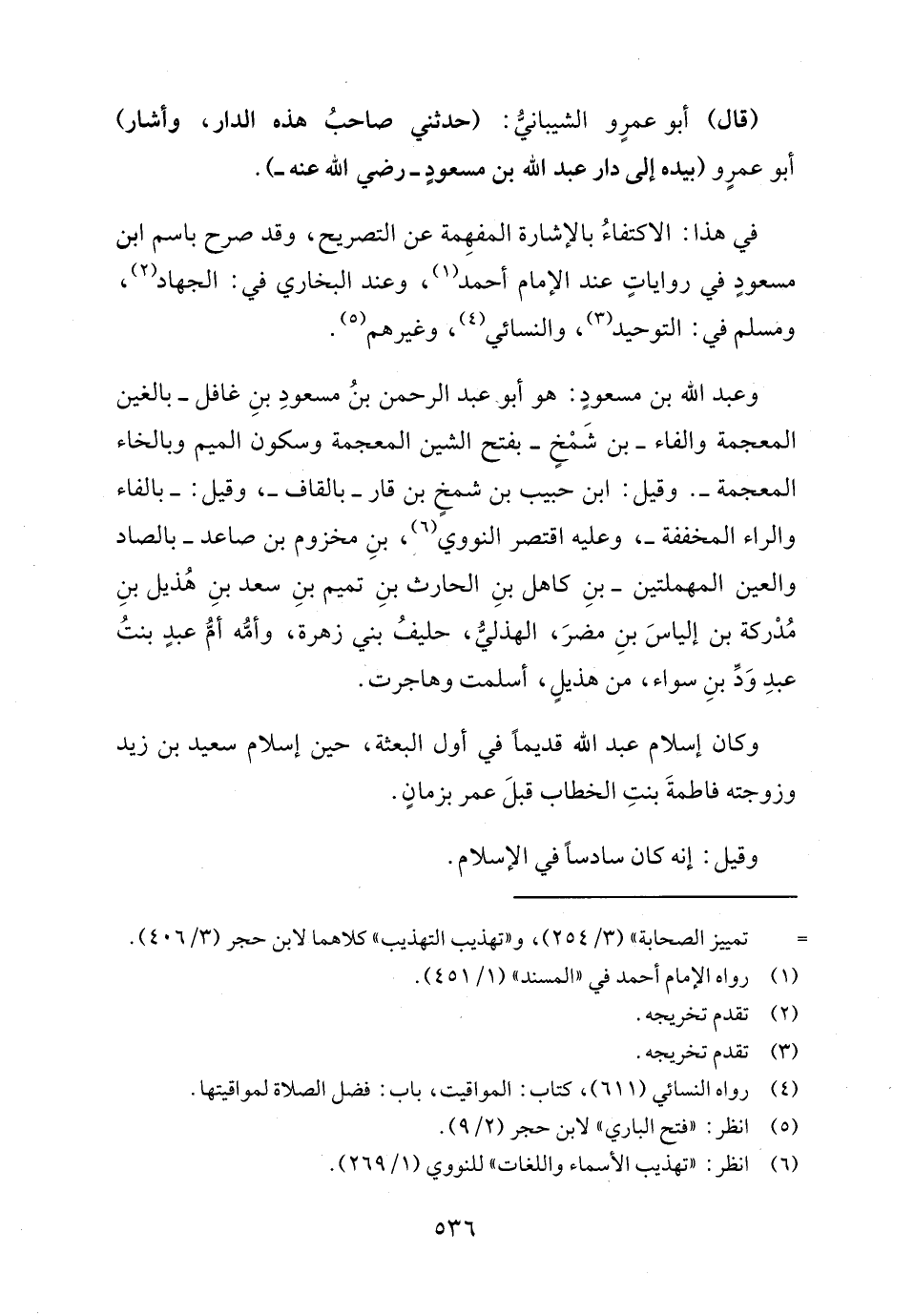 (قال) أبو عمرٍو الشيبانيُّ: (حدثني صاحبُ هذه الدار، وأشار) أبو عميرٍو (بيده إلى دار عبد الله بن مسعودٍ - رضي الله عنه -).