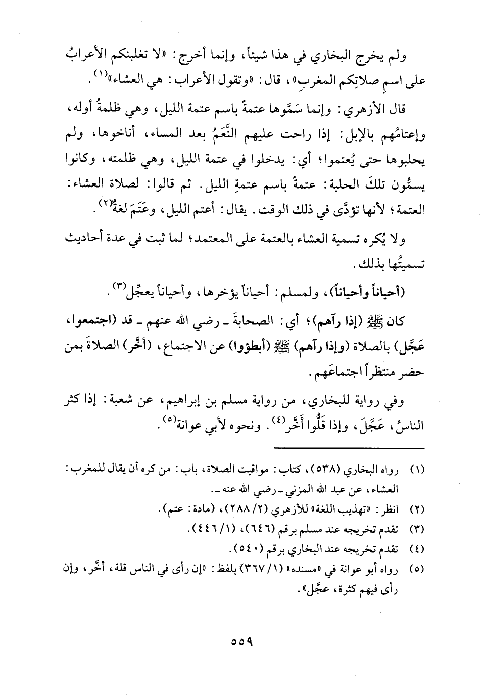 (٥) رواه أبو عوانة في "مسنده" (١/ ٣٦٧) بلفظ: "إن رأى في الناس قلة، أخَّر، وإن رأى فيهم كثرة، عجَّل".