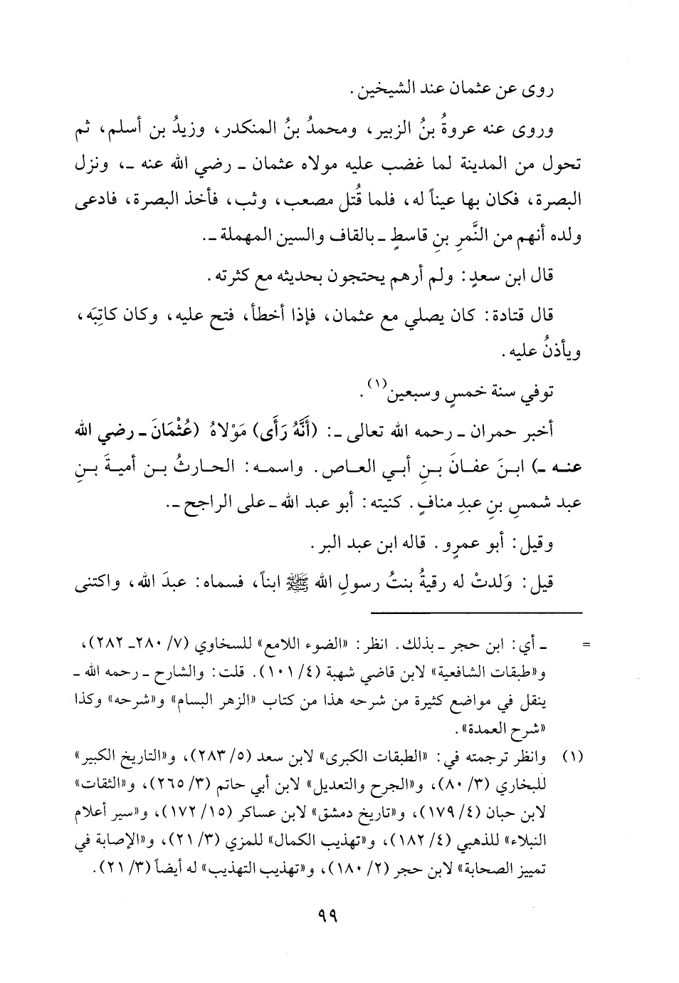 أخبر حمران - رحمه الله تعالى -: (أَنَّهُ رَأَى) مَوْلاهُ (عُثْمَانَ - رضي الله عنه -) ابنَ عفانَ بنِ أبي العاص. واسمه: الحارثُ بن أميةَ بنِ عبد شمسِ بنِ عبدِ منافٍ. كنيته: أبو عبد الله - على الراجح -.