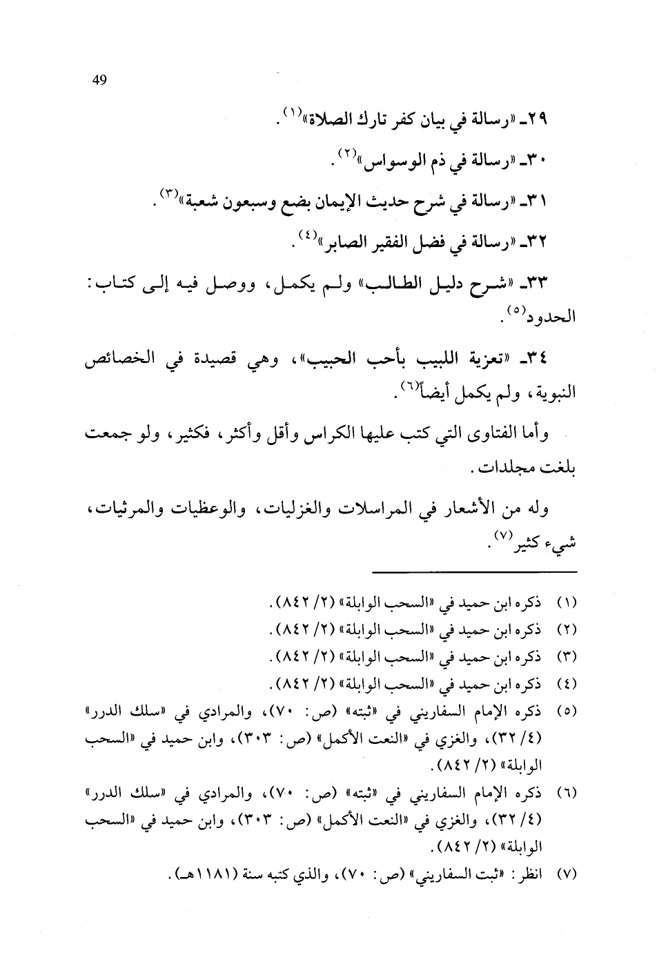 (٥) ذكره الإمام السفاريني في "ثبته" (ص: ٧٠)، والمرادي في "سلك الدرر" (٤/ ٣٢)، والغزي في "النعت الأكمل" (ص: ٣٠٣)، وابن حميد في "السحب الوابلة" (٢/ ٨٤٢).