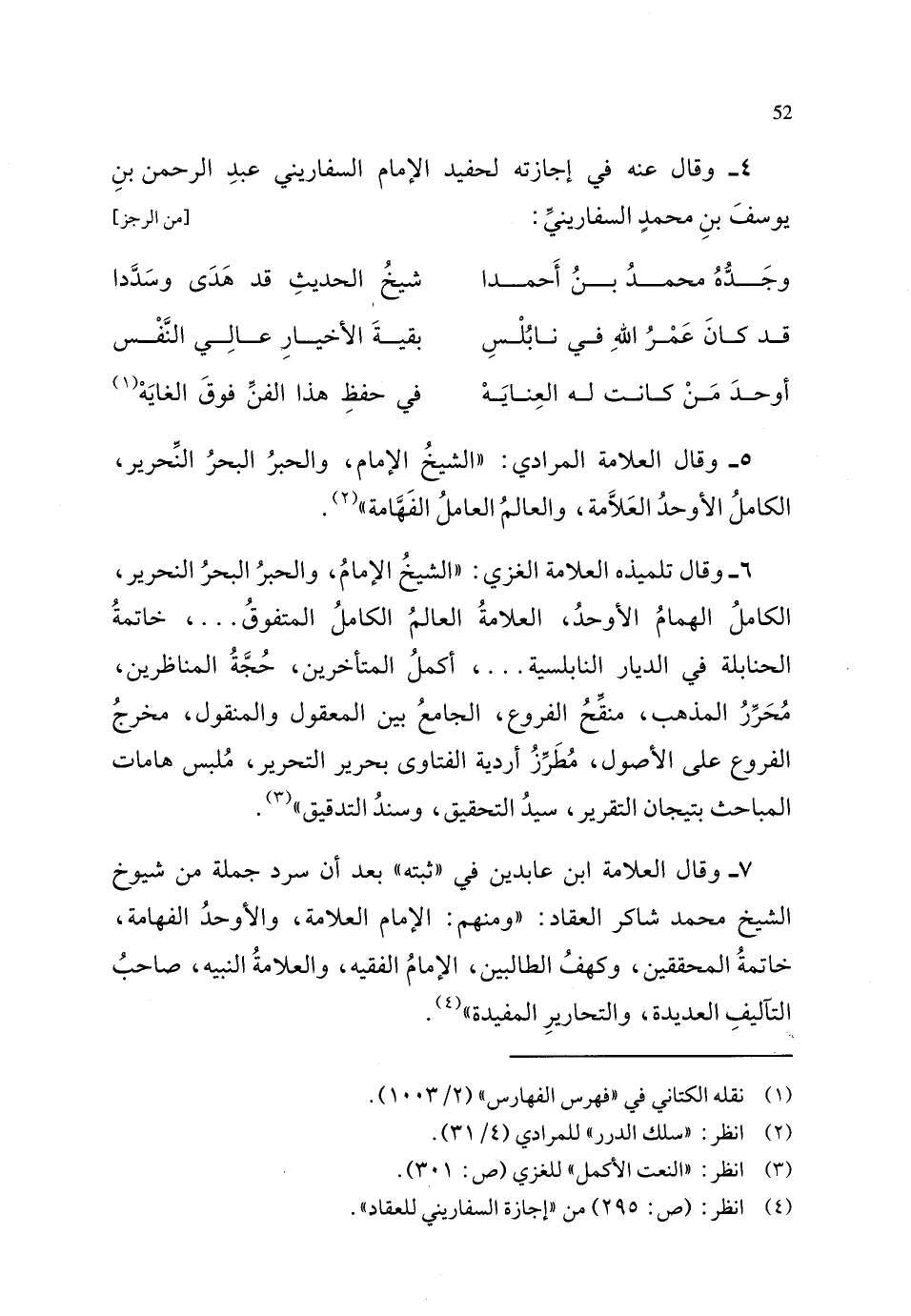 (٤) انظر: (ص: ٢٩٥) من "إجازة السفاريني للعقاد".