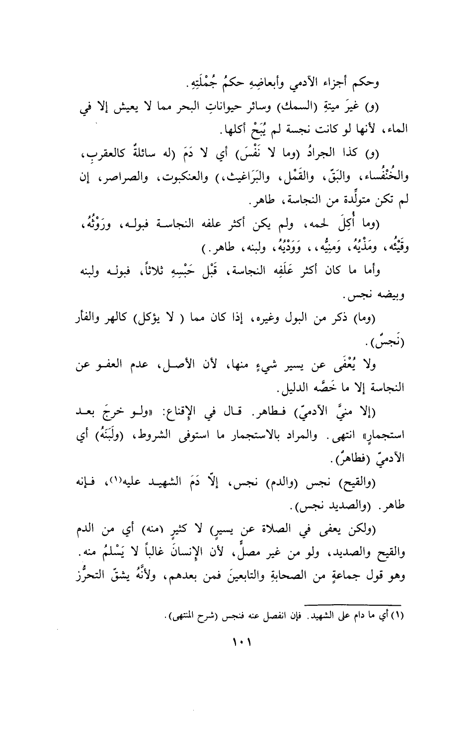 (¬1) أي ما دام على الشهيد. فإن انفصل عنه فنجس (شرح النتهى).
