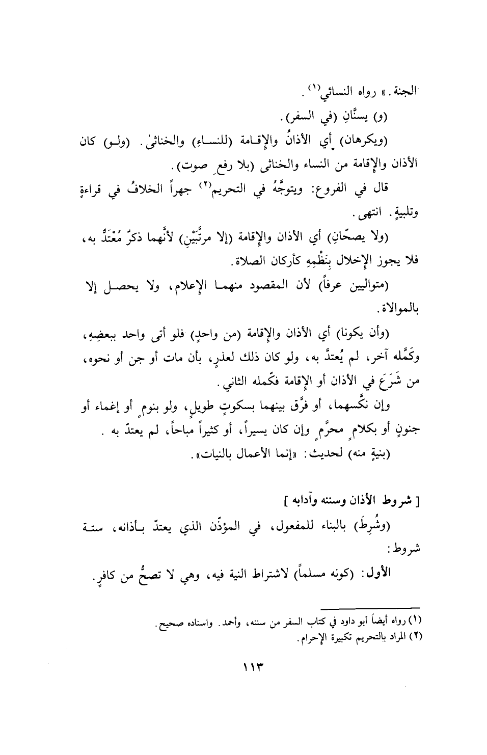 (¬2) المراد بالتحريم تكبيرة الإحرام.