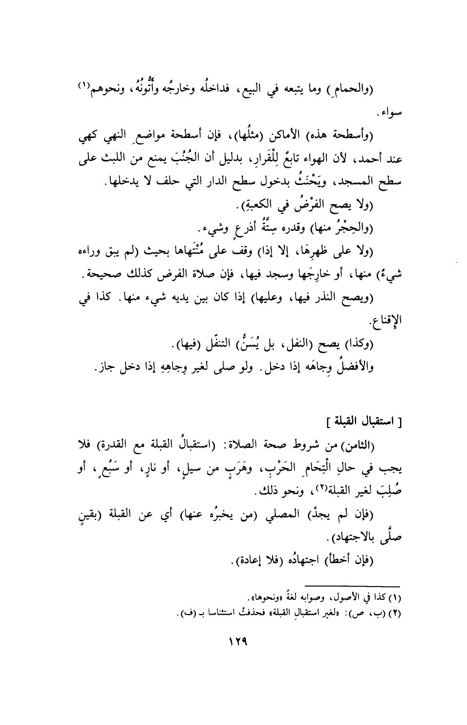 (¬2) (ب، ص): "لغير استقبالِ القبلة" فحذفتُ استئناسا بـ (ف).
