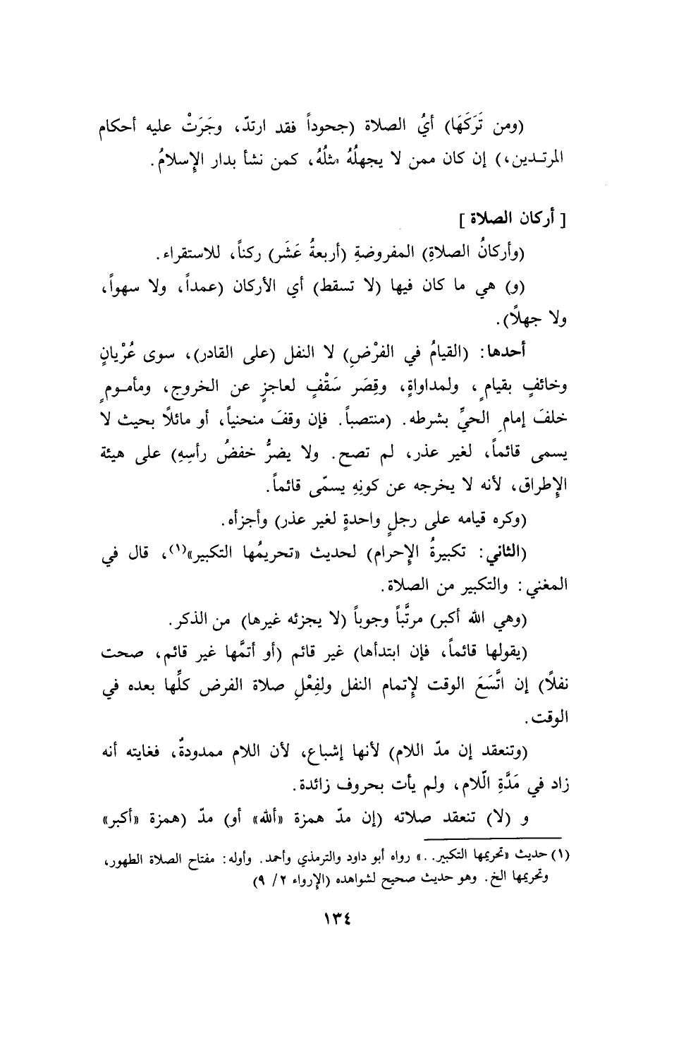 (¬1) حديث "تحريمها التكبير .. " رواه أبو داود والترمذي وأحمد. وأوله: مفتاح الصلاة الطهور، وتحريمها الخ. وهو حديث صحيح لشواهده (الإرواء 2/ 9)