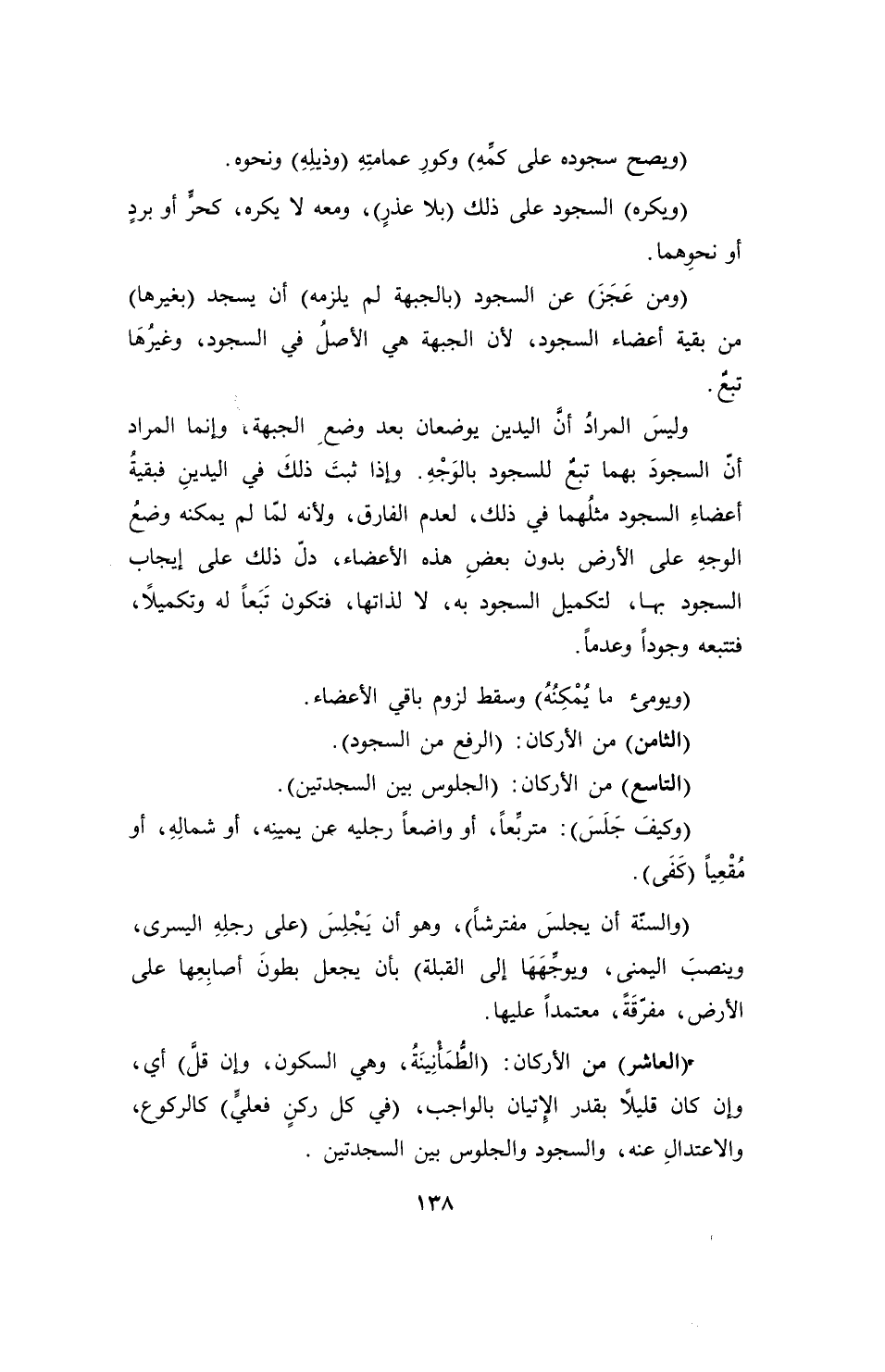 وليسَ المرادُ أنَّ اليدين يوضعان بعد وضعِ الجبهة، وإنما المراد أنّ السجودَ بهما تبعٌ للسجود بالوَجْهِ. وإذا ثبتَ ذلكَ في اليدينِ فبقيةُ أعضاءِ السجود مثلُهما في ذلك، لعدم الفارق، ولأنه لما لم يمكنه وضعُ الوجهِ على الأرض بدون بعضِ هذه الأعضاء، دلّ ذلك على إيجاب السجود بها، لتكميل السجود به، لا لذاتها، فتكون تَبَعاً له وتكميلاً، فتتبعه وجوداً وعدماً.