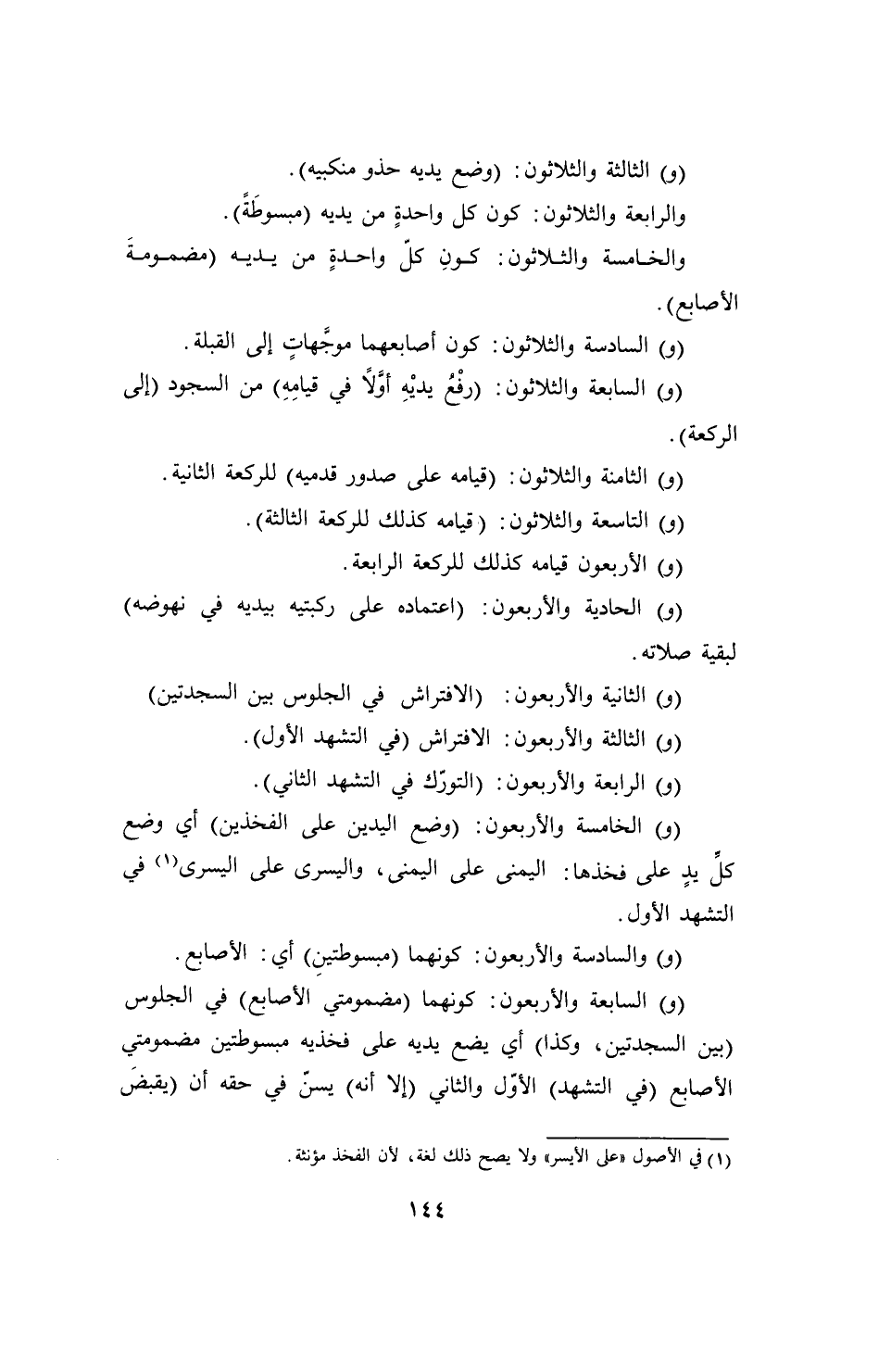 (و) الثالثة والثلاثون: (وضع يديه حذو منكبيه).