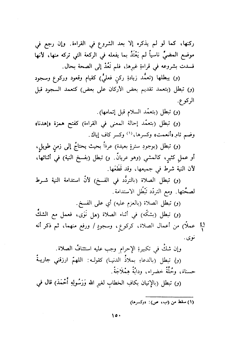 (و) تبطل الصلاة (بالتردُّد في الفسخ) لأنَّ استدامة النية شرط لصحَّتها. ومع التردّد تَبْطُل الاستدامة.
