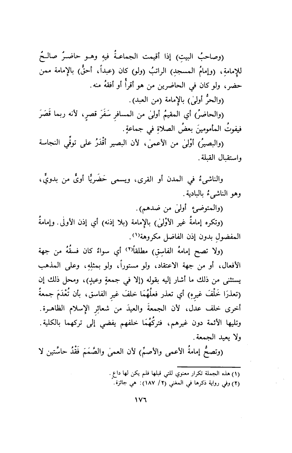 (والحاضرُ) أي المقيمُ أولى من المسافرِ سَفرَ قصرٍ، لأنه ربما قَصَرَ فيفوتُ المأمومينَ بعضُ الصلاةِ في جماعةٍ.