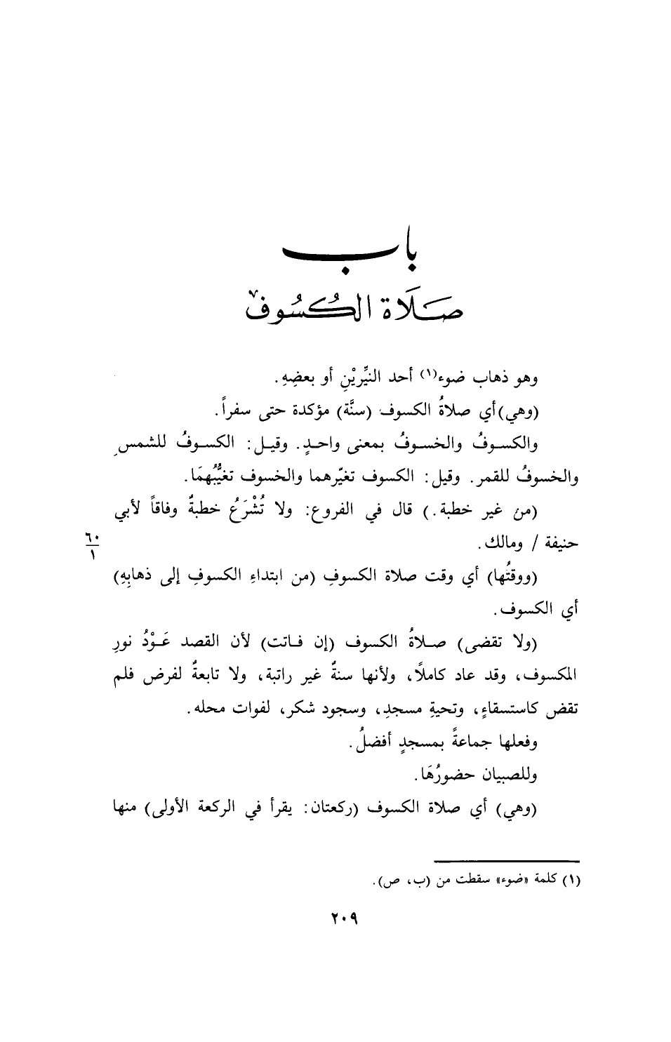 (¬1) كلمة "ضوء" سقطت من (ب، ص).