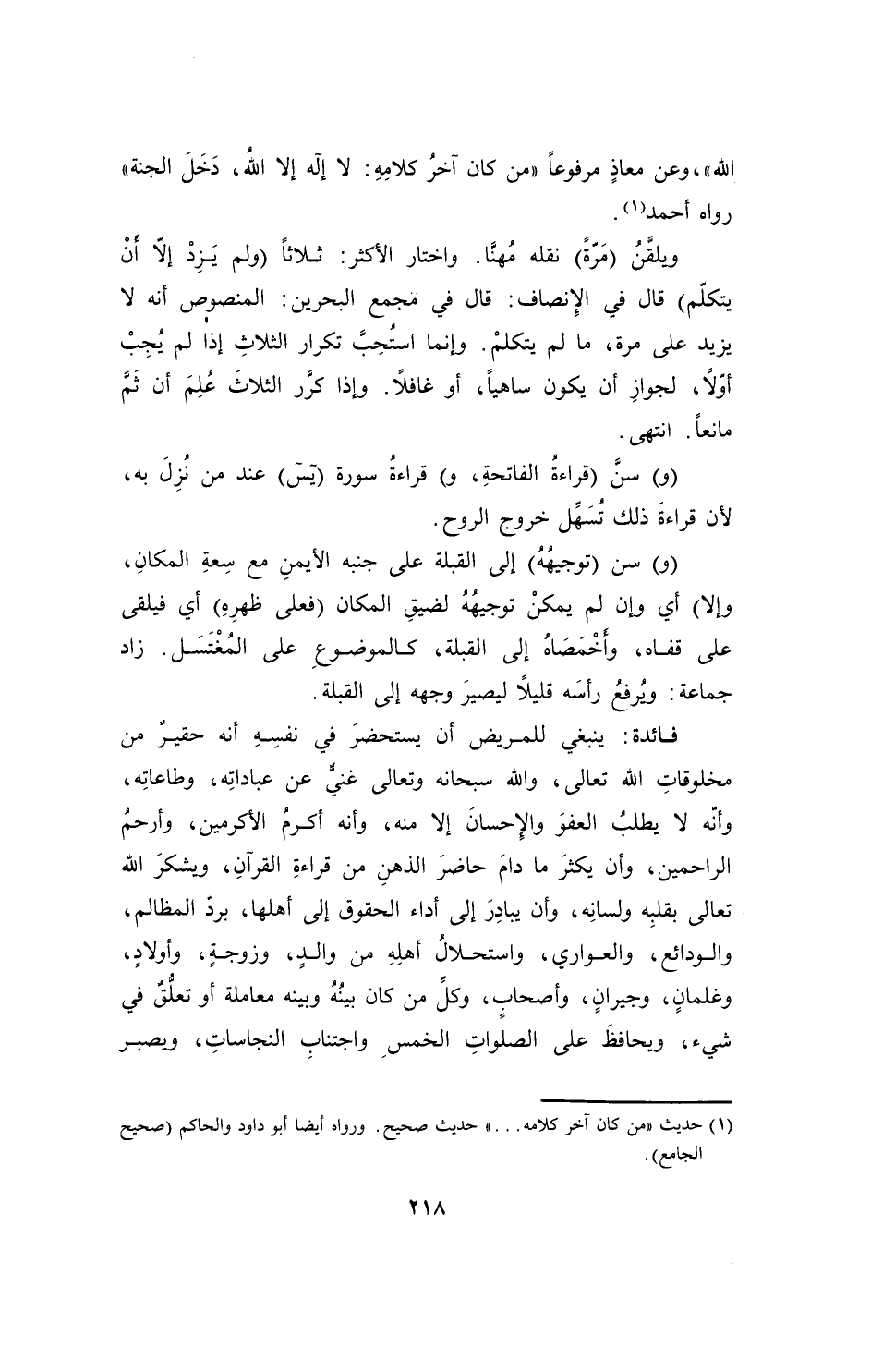 (¬1) حديث "من كان آخر كلامه ... " حديث صحيح. ورواه أيضاً أبو داود والحاكم (صحيح