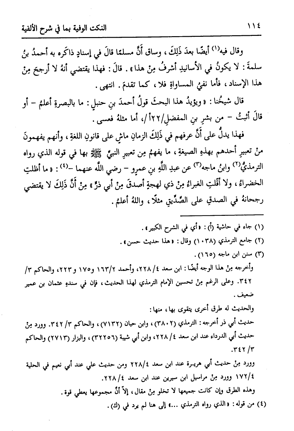 فهذا يدلُّ على أَنَّ عرفهم في ذَلِكَ الزمانِ ماشٍ على قانونِ اللغةِ، وأنهم يفهمونَ منْ تعبيرِ أحدهم بهذهِ الصيغةِ، ما يفهمُ مِنْ تعبيرِ النبيِّ - صلى الله عليه وسلم - بها في قولهِ الذي رواه الترمذيُّ (¬2) وابنُ ماجه (¬3) عن عبدِ اللهِ بنِ عمرٍو - رضي الله عنهما - (¬4): ((ما أظلتِ الخضراءُ، ولا أقّلتِ الغبراءُ مِنْ ذي لهجةٍ أصدقَ مِنْ أبي ذرٍّ)) مِنْ أَنَّ ذَلِكَ لا يقتضي رجحانهُ في الصدقِ على الصِّدِّيقِ مثلاً، واللهُ أعلمُ.