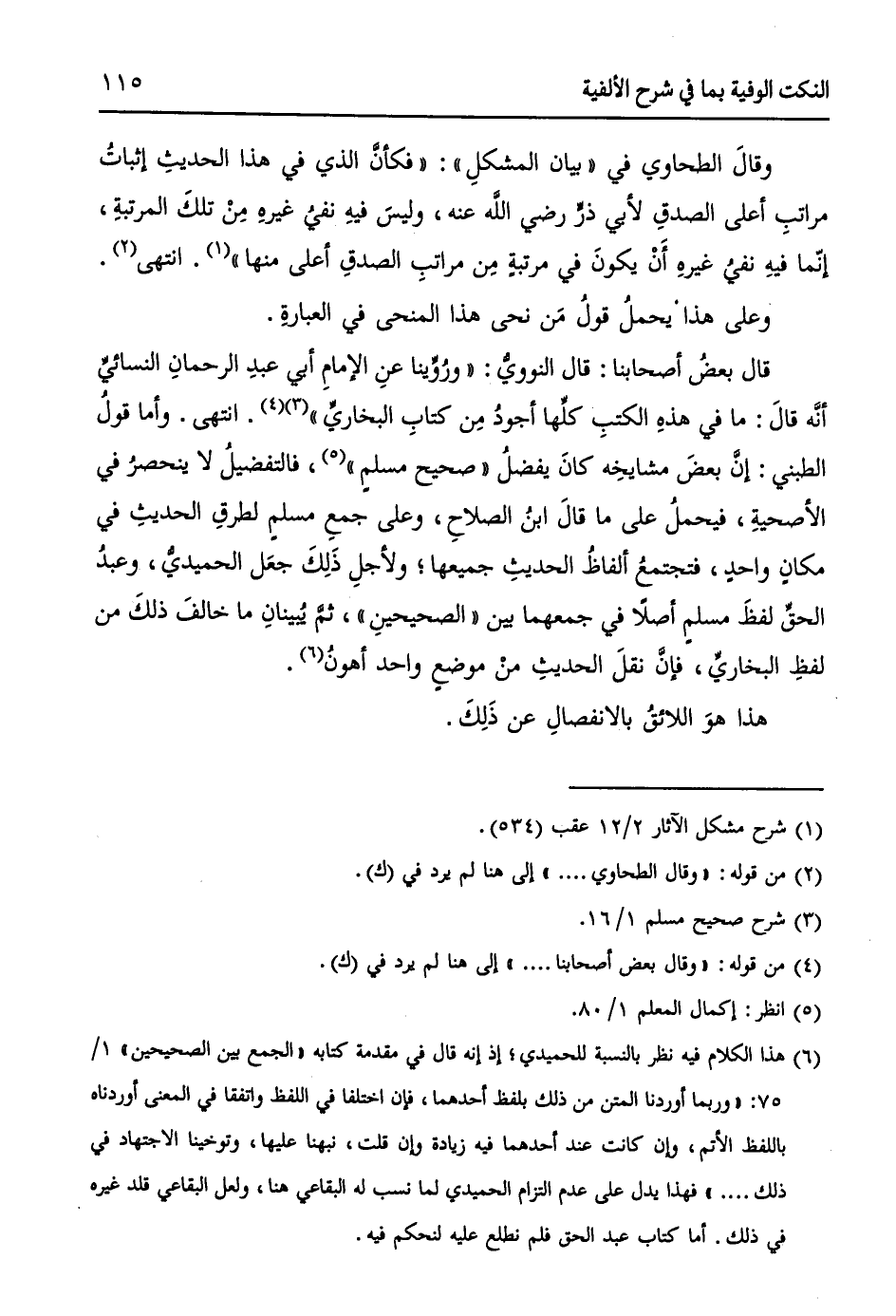 قالَ بعضُ أصحابنا: قال النوويُّ: ((ورُوِّينا عنِ الإمامِ أبي عبدِ الرحمانِ النسائيِّ أنَّهُ قالَ: ما في هذهِ الكتبِ كلِّها أجودُ مِنْ كتابِ البخاريِّ)) (¬3) (¬4). انتهى. وأما قولُ الطبني: إنَّ بعضَ مشايخهِ كانَ يفضلُ " صحيحَ مسلمٍ " (¬5)، فالتفضيلُ لا ينحصرُ في الأصحيةِ، فيحملُ على ما قالَ ابنُ الصلاحِ، وعلى جمعِ مسلمٍ لطرقِ الحديثِ في مكانٍ واحدٍ، فتجتمعُ ألفاظُ الحديثِ جميعها؛ ولأجلِ ذَلِكَ جعلَ الحميديُّ، وعبدُ الحقِّ لفظَ مسلمٍ أصلاً في جمعهما بين "الصحيحينِ"، ثمَّ يُبينانِ ما خالفَ ذلكَ منْ لفظِ البخاريِّ، فإنَّ نقلَ الحديثِ منْ موضعٍ واحد أهونُ (¬6).